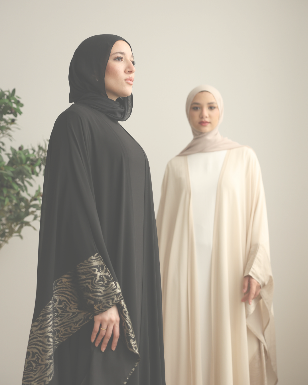 Crepe Abaya with Diagonal Leather Chiffon Detail C95
