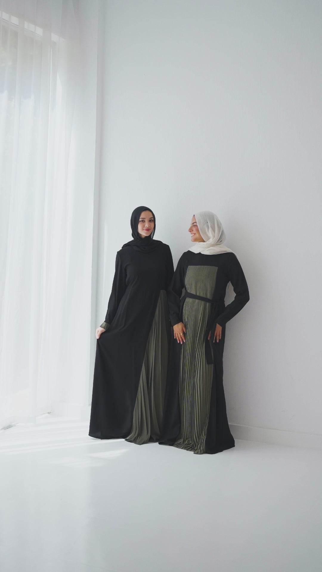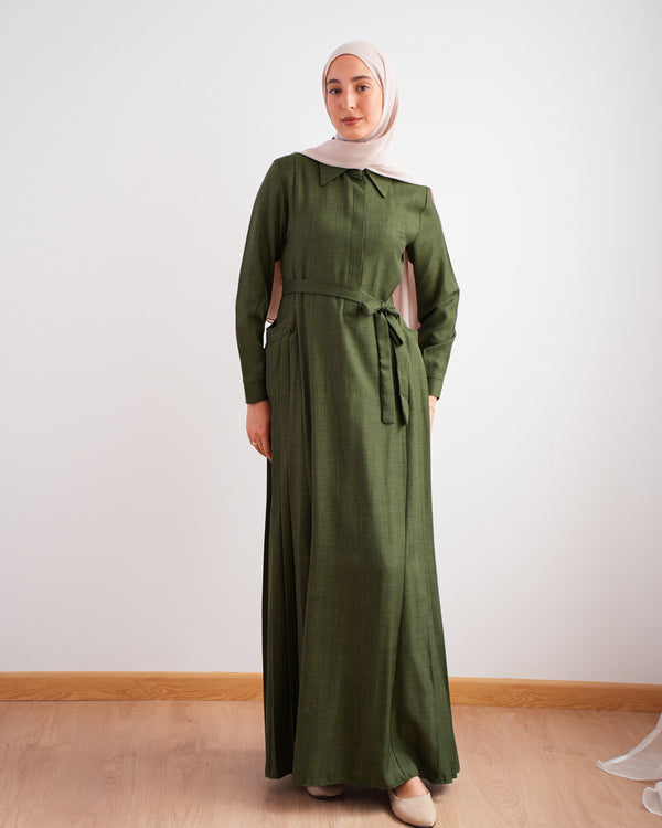 Side Wrap Pleated Abaya Olive C113