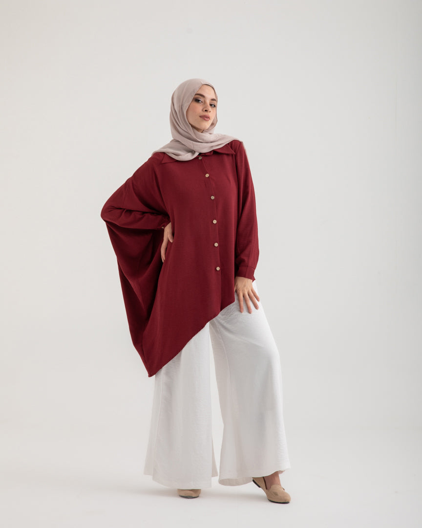 Feel light like a feather and uniquely stylish this summer with our new practical asymmetric linen shirt!