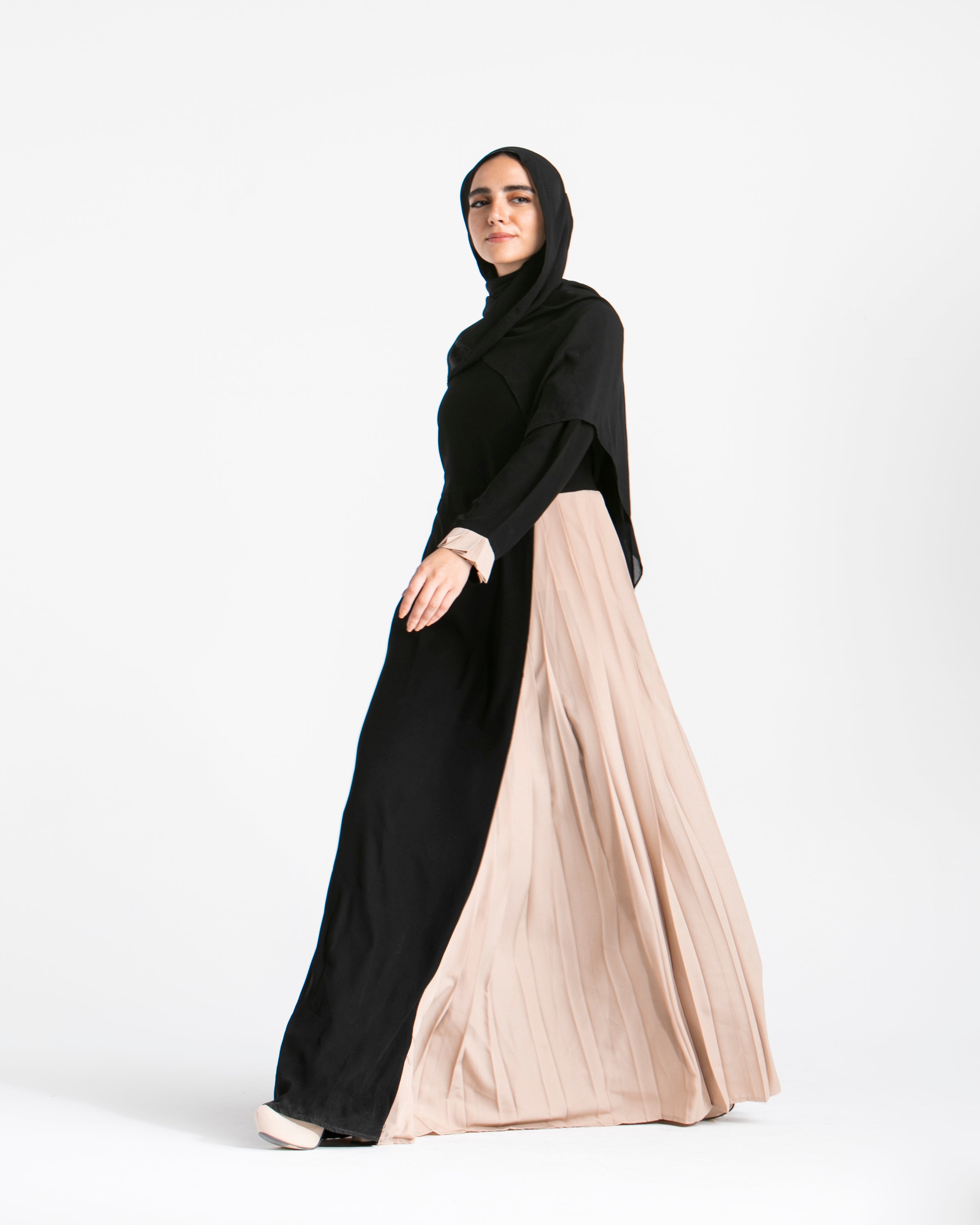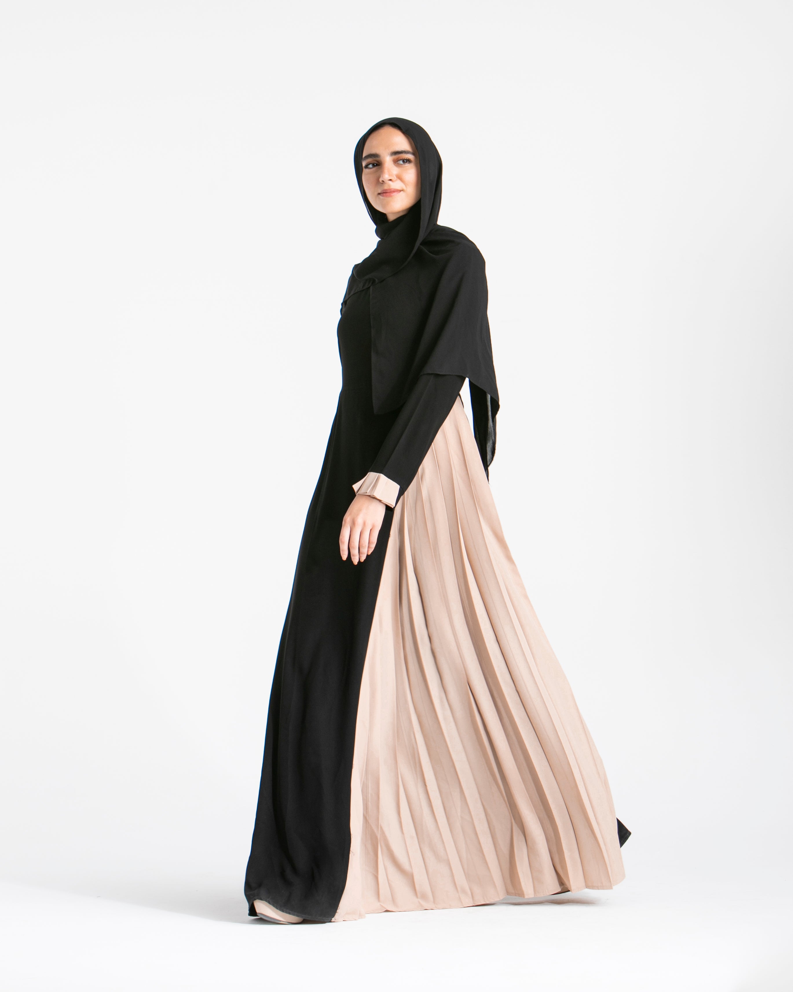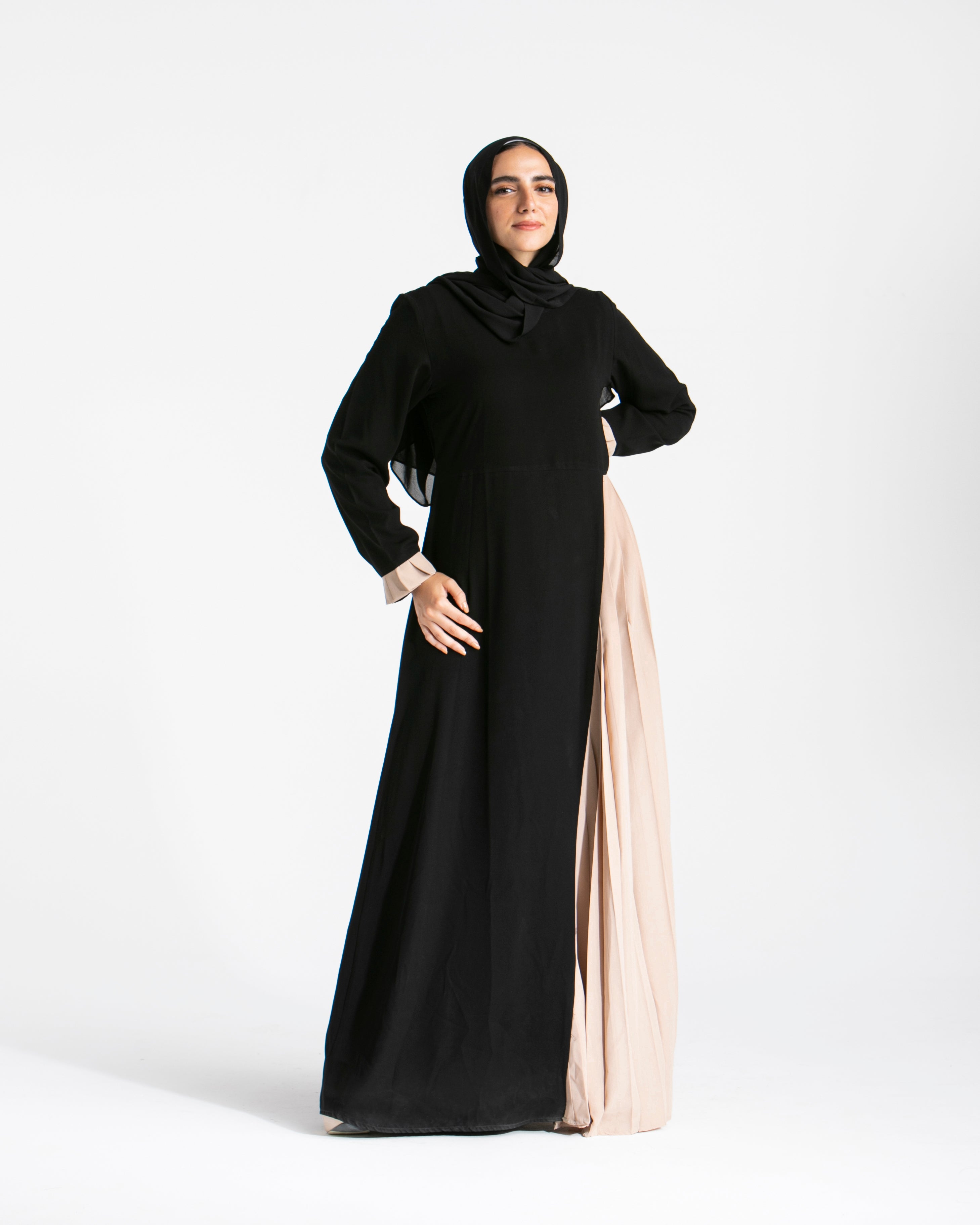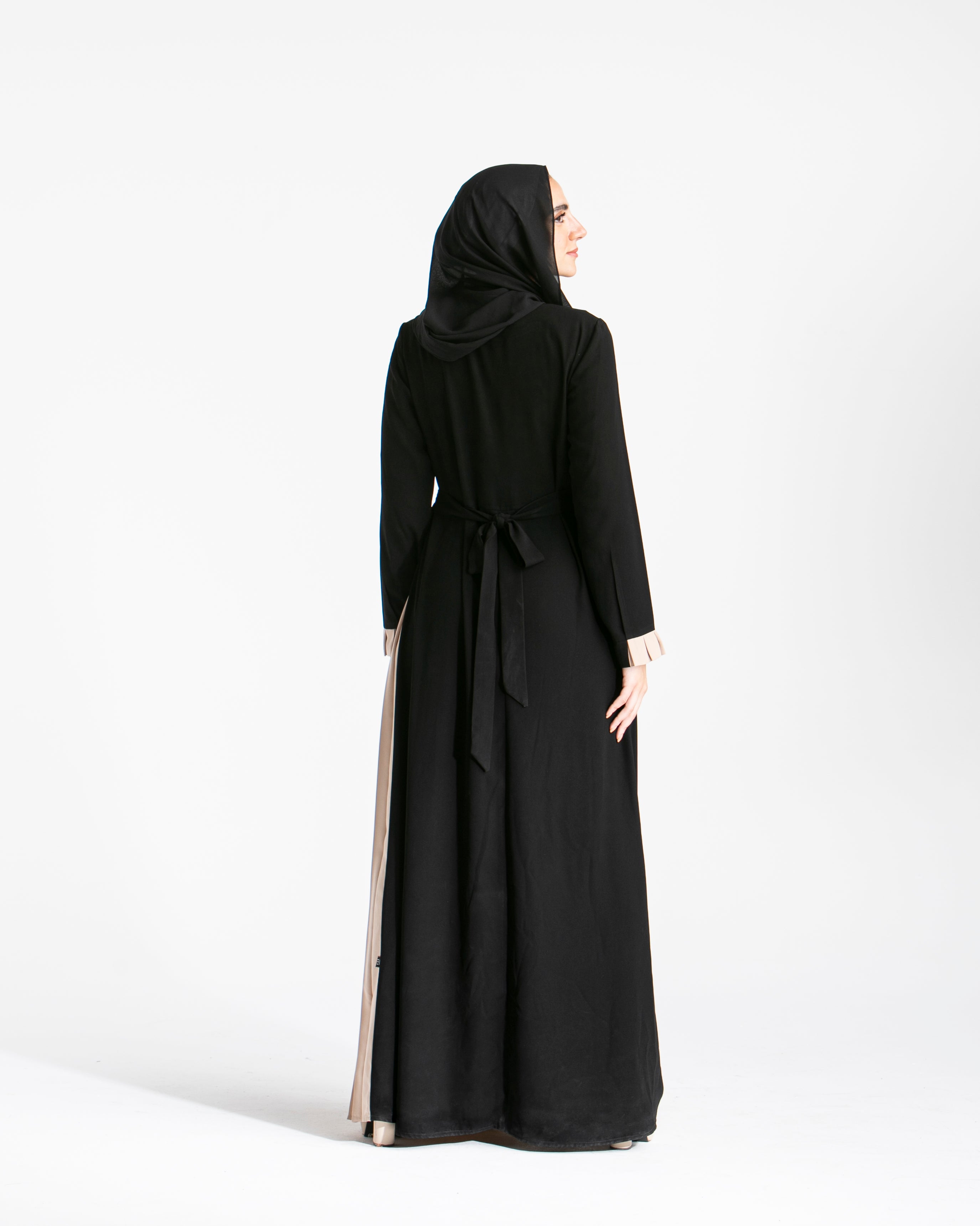 If you need fancy effortless elegant look, then this is the perfect Abaya for you! Add some new style and extra elegance to your Abaya collection with our new black and olive side pleated Abaya with extending pleated cuffs, designed especially for those who love pleats.