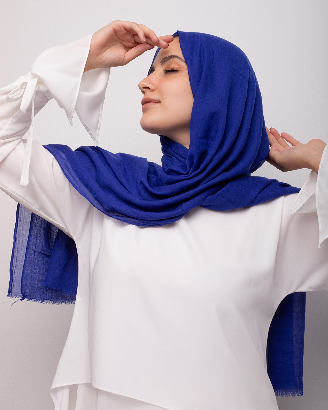 A basic scarf is an essential piece in every hijabi wardrobe. The soft poly fiber material of the scarf feels way smoother than any other fabric. It's lightweight makes it extra comfortable. The solid color, crinkled style and the fringed ends of the scarf add to its elegance and delicacy