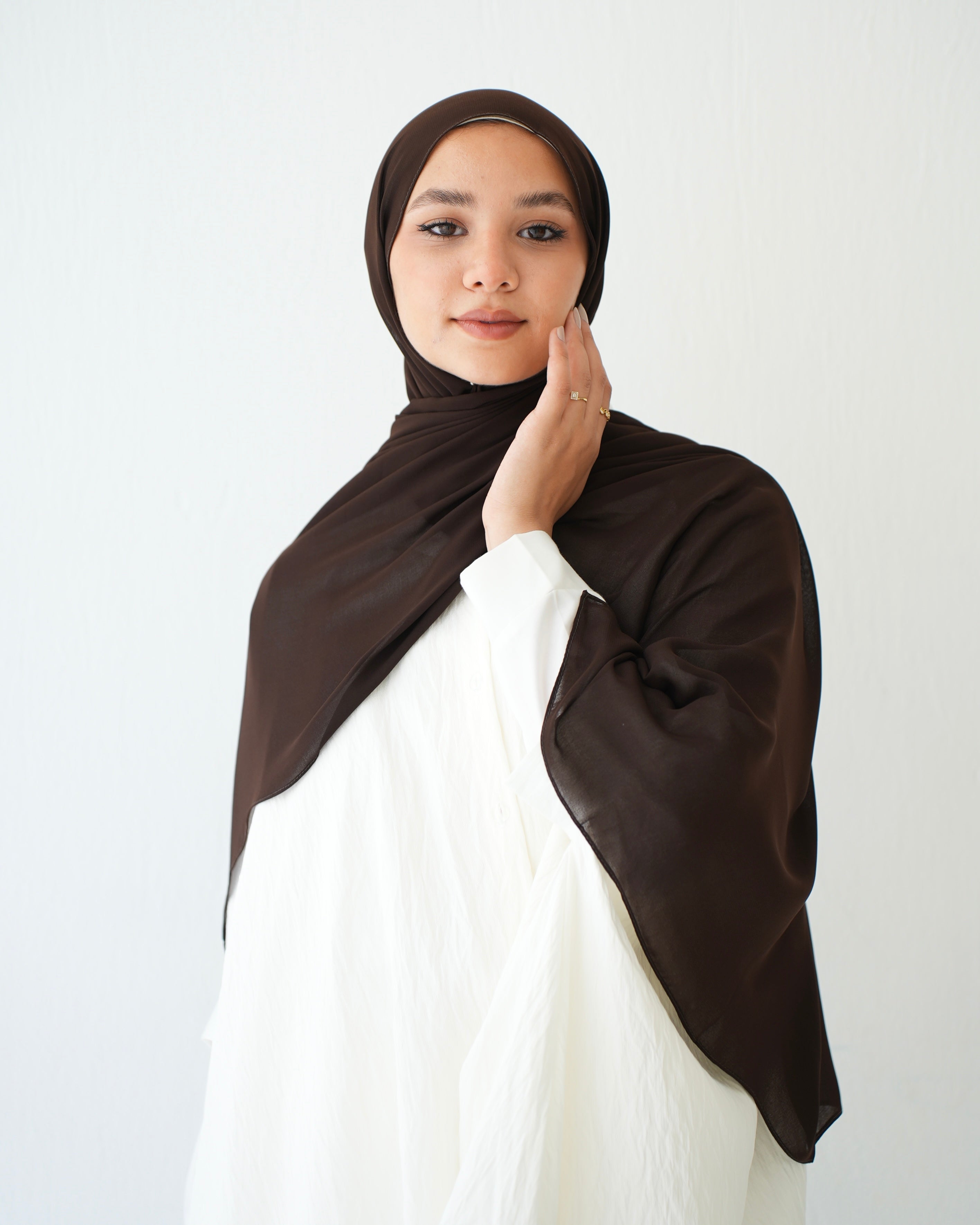 - Soft Cotton Chiffon Scarf Dark Brown