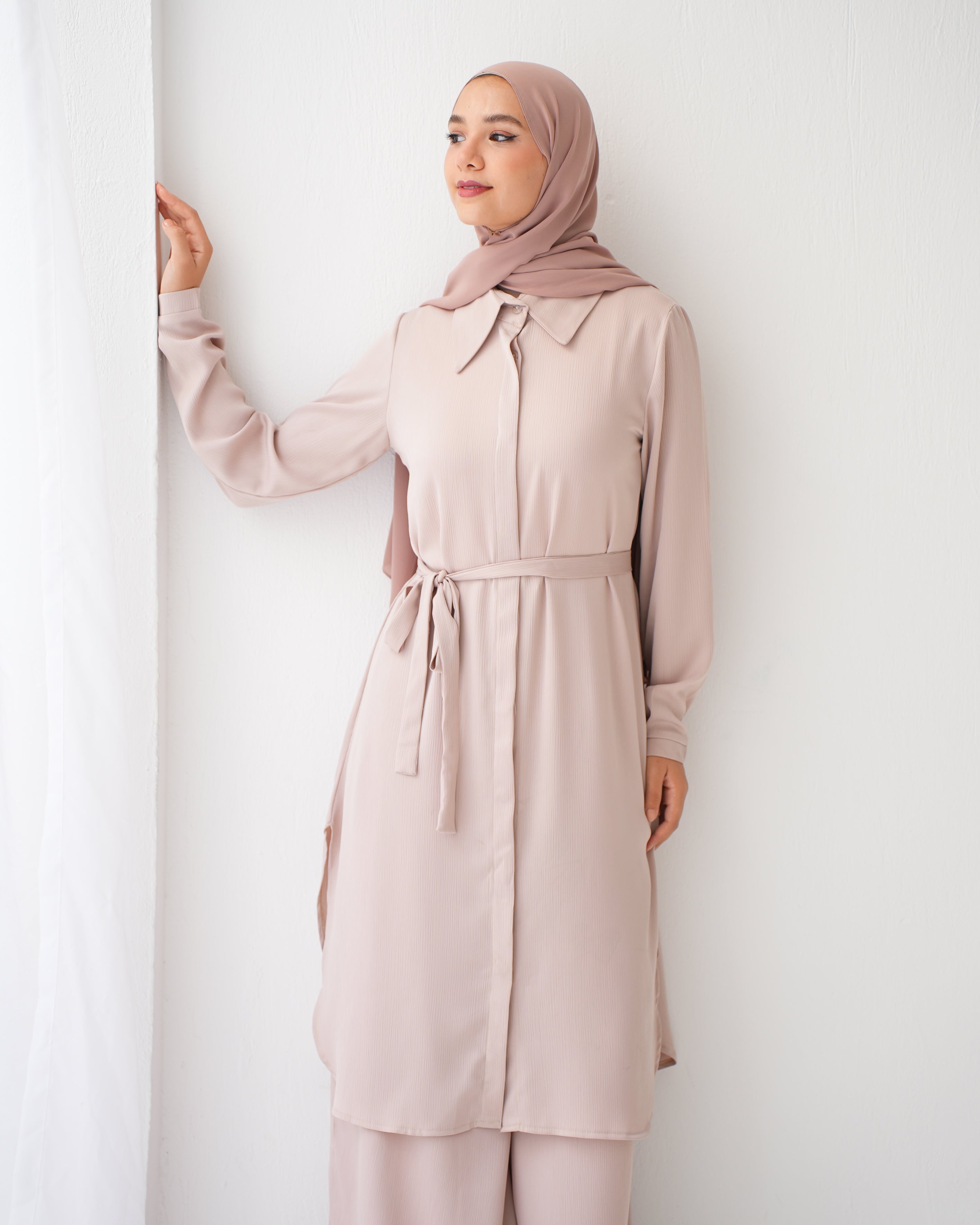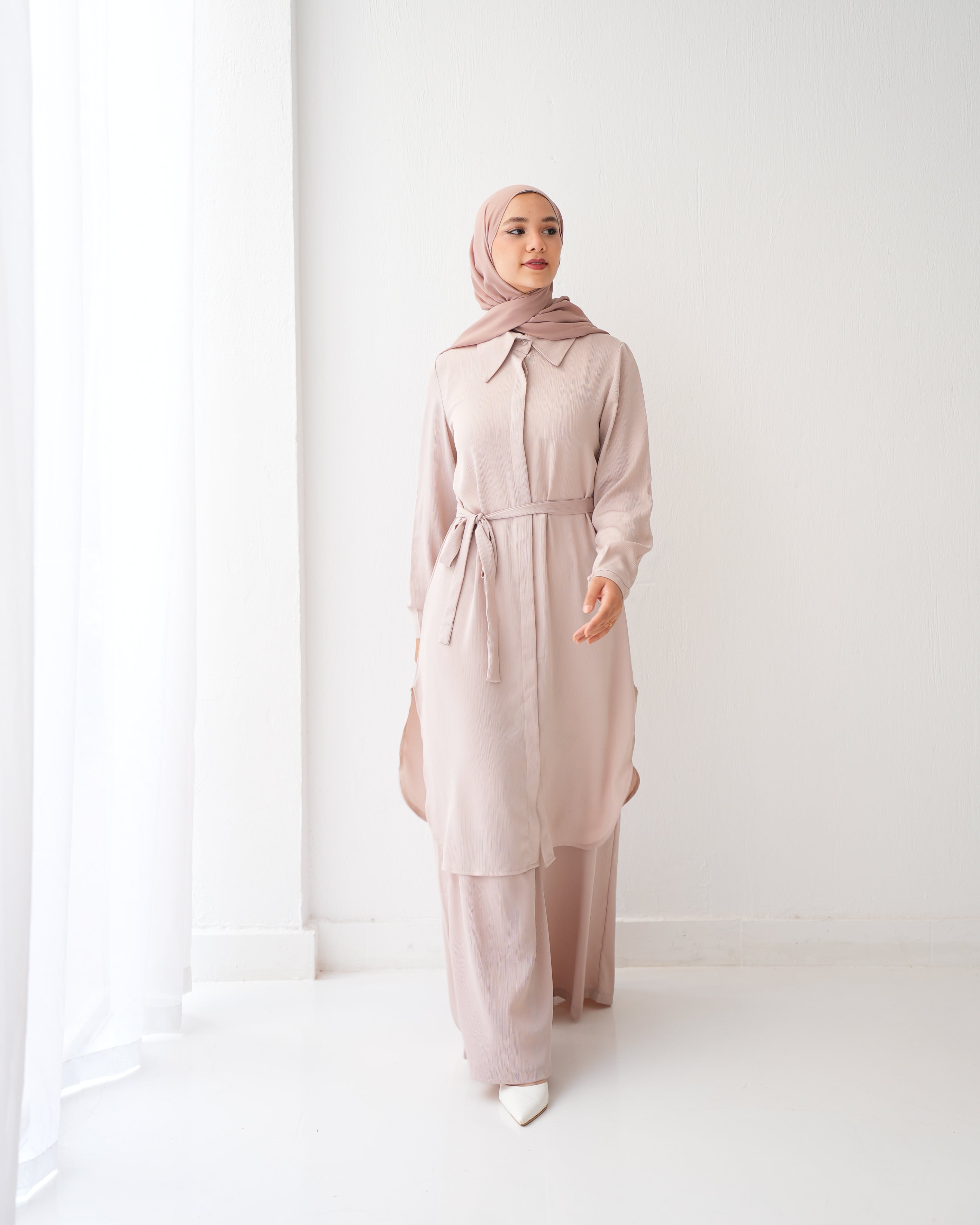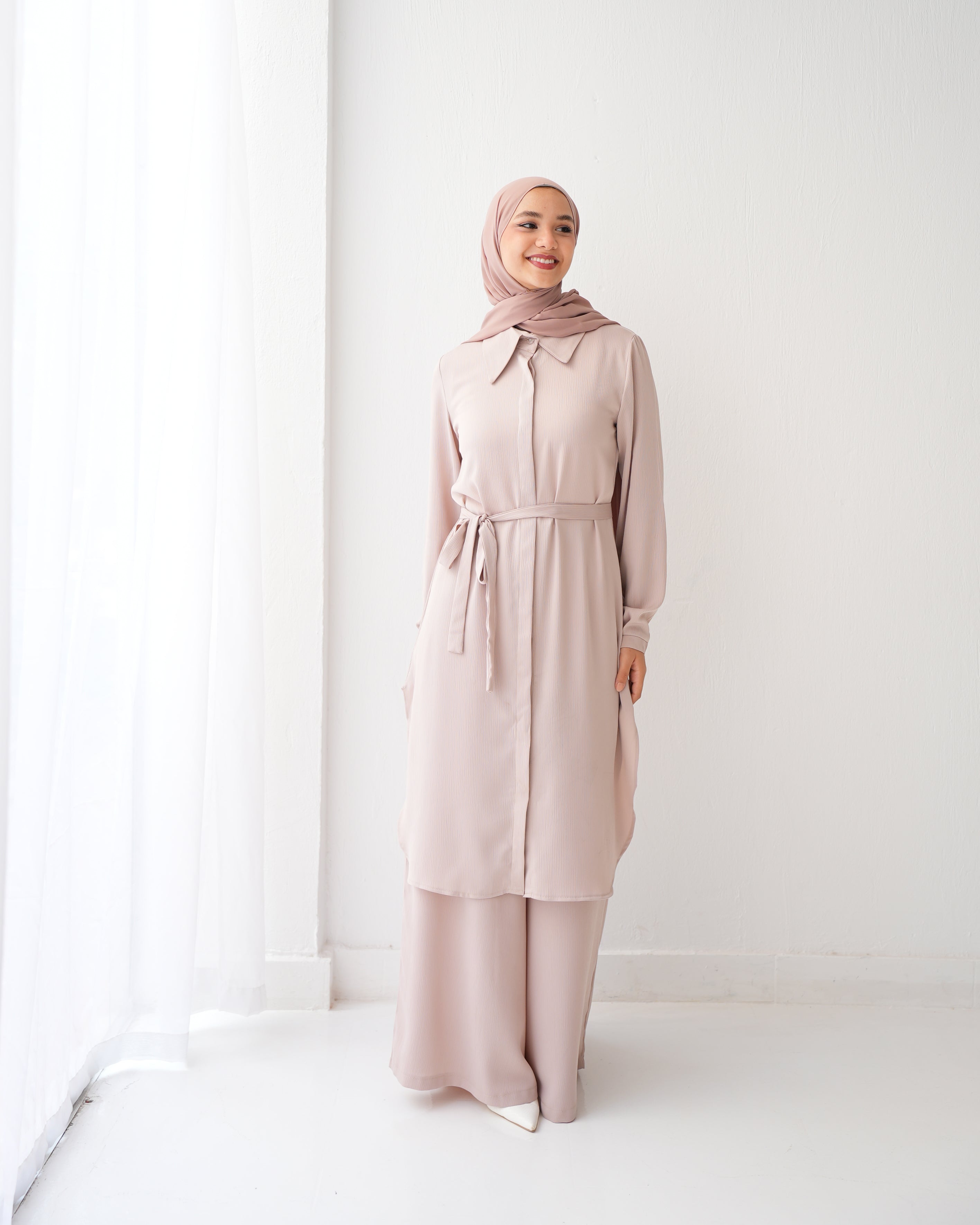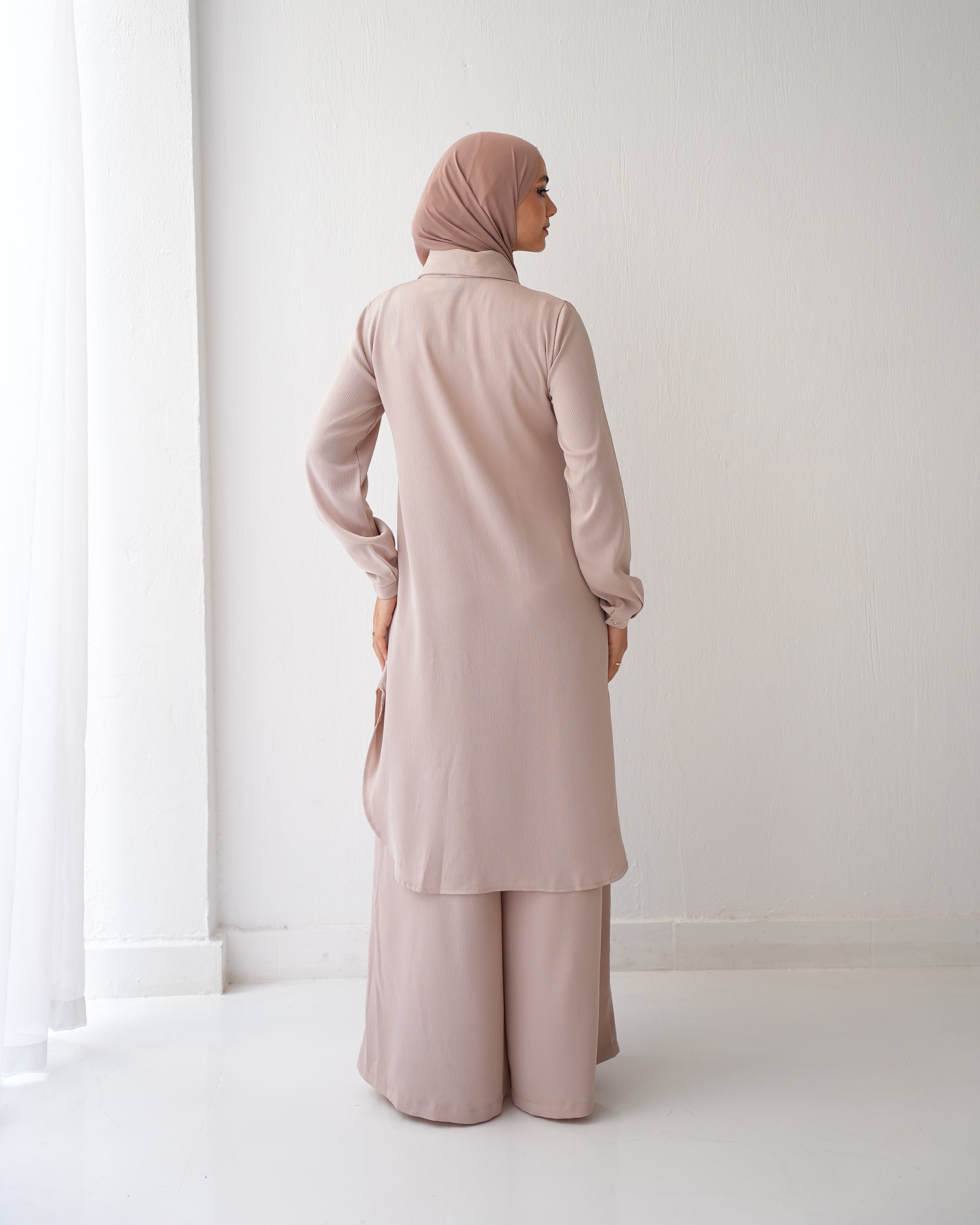 Chemise and Wide Leg Pants Set Beig Code 1201