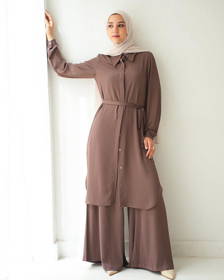 Chemise and Wide Leg Pants Set Cafe Code 1201