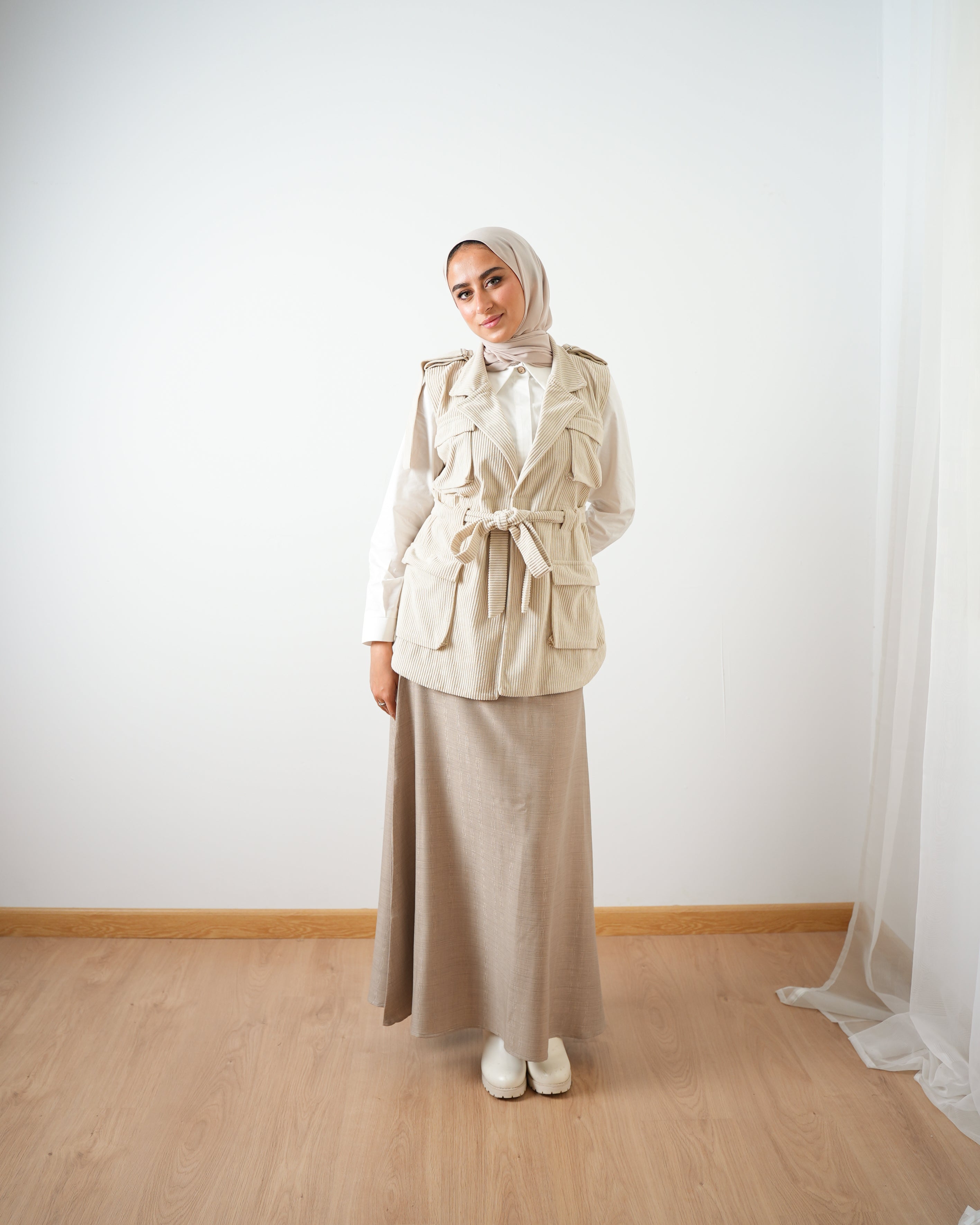 Introducing Our Chic Corduroy Cargo Vest: Effortless Style with a Touch of Utility Elevate your modest fashion with our new Corduroy Cargo Vest from D'Maison.