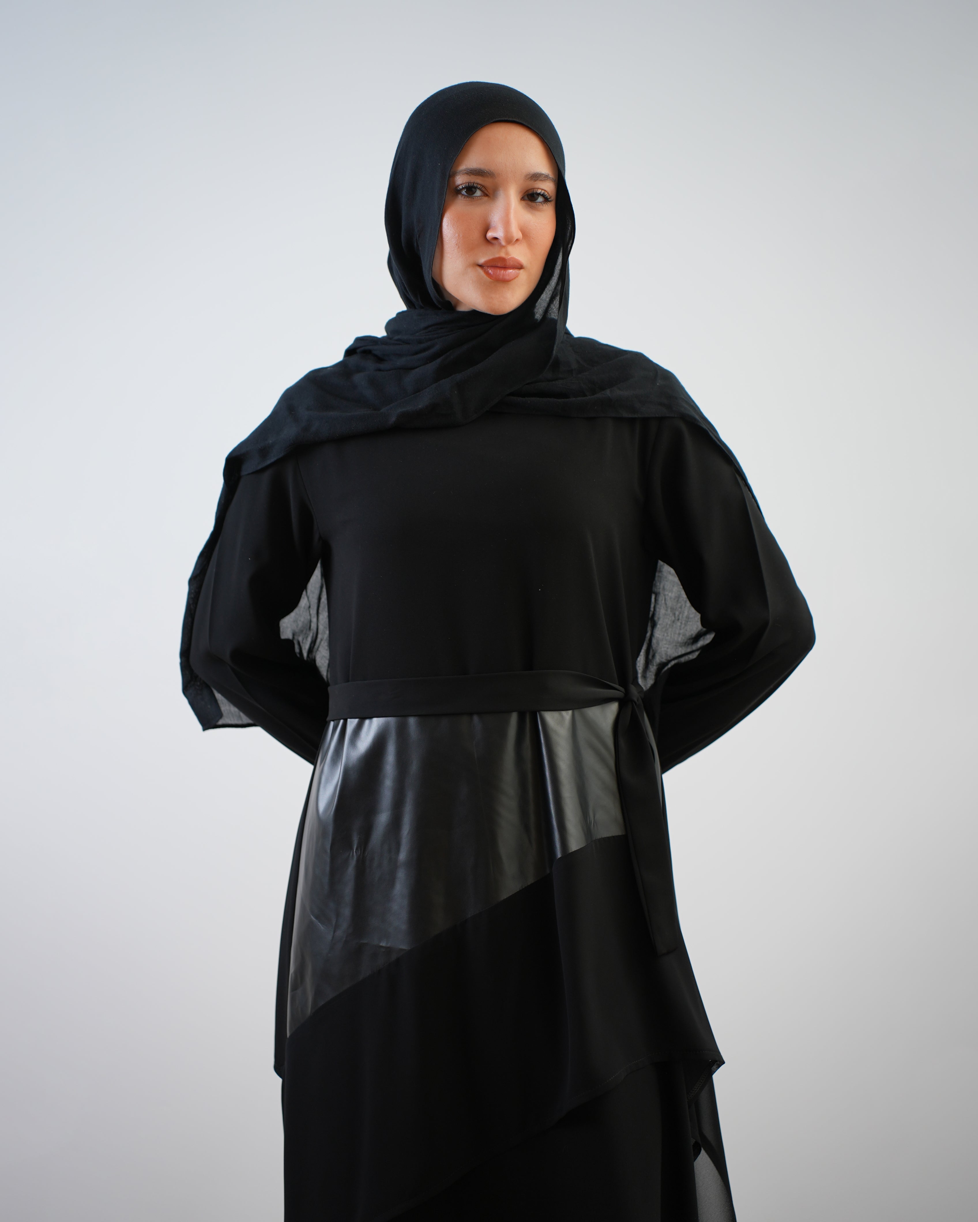 Crepe Abaya with Diagonal Leather Chiffon Detail C95