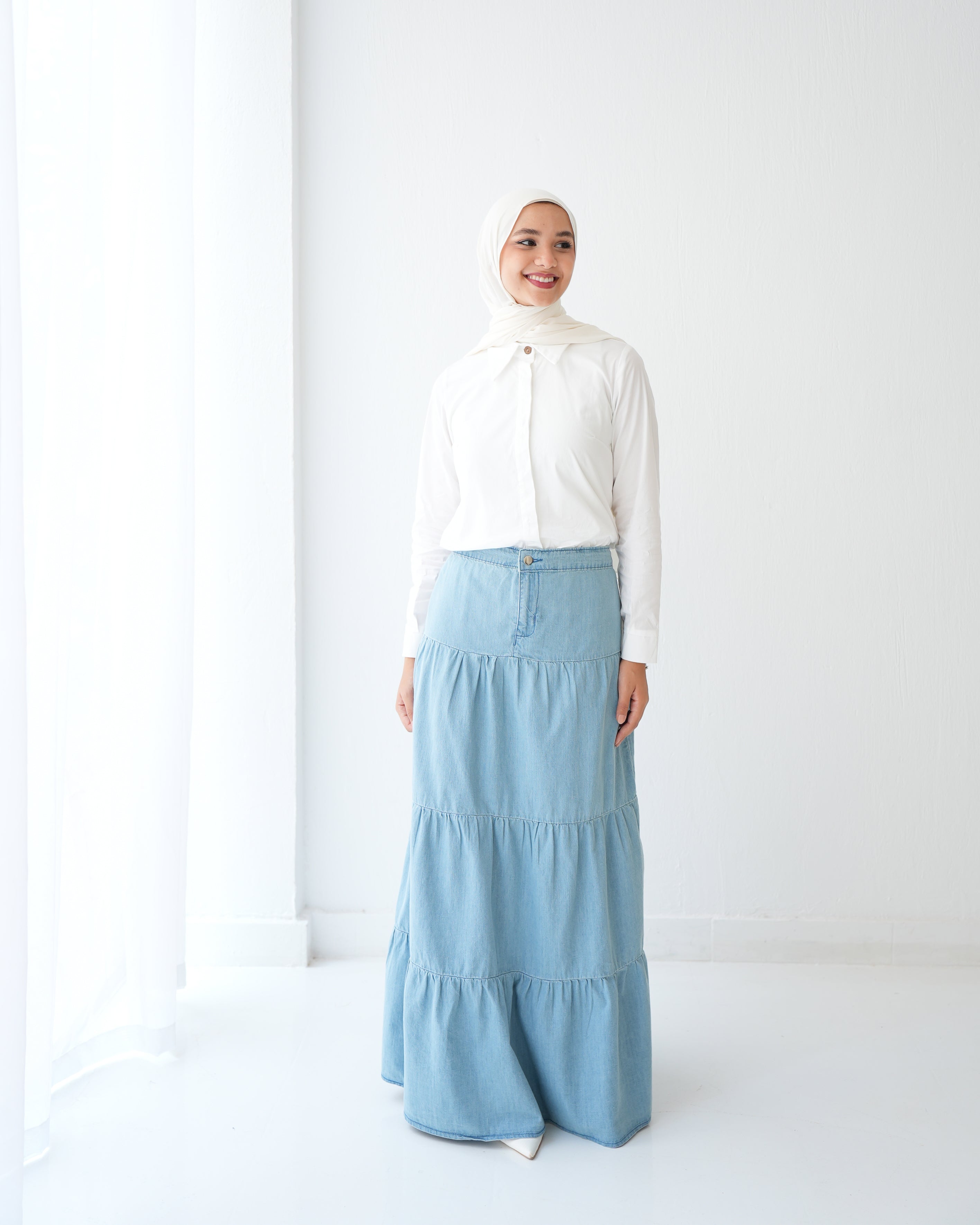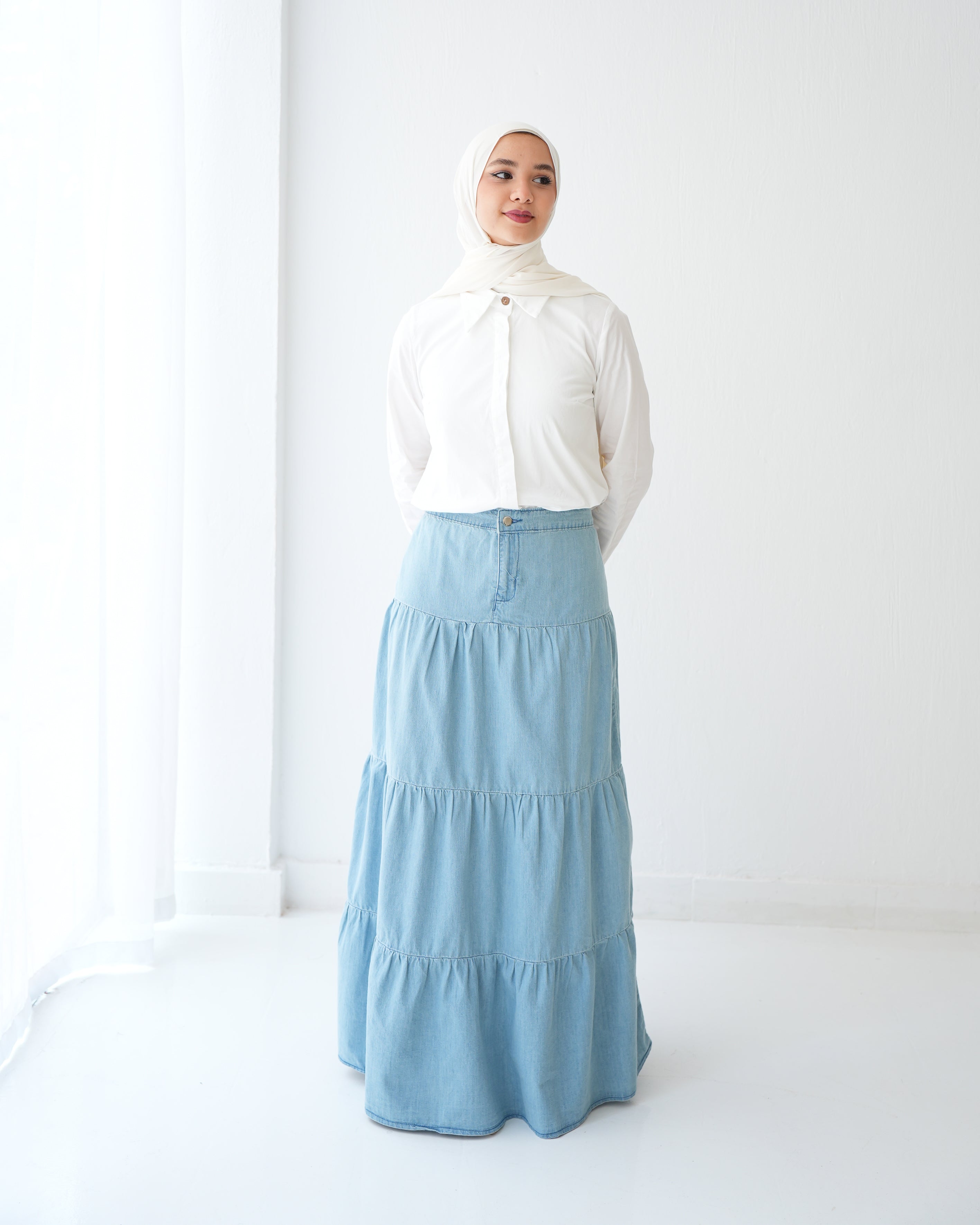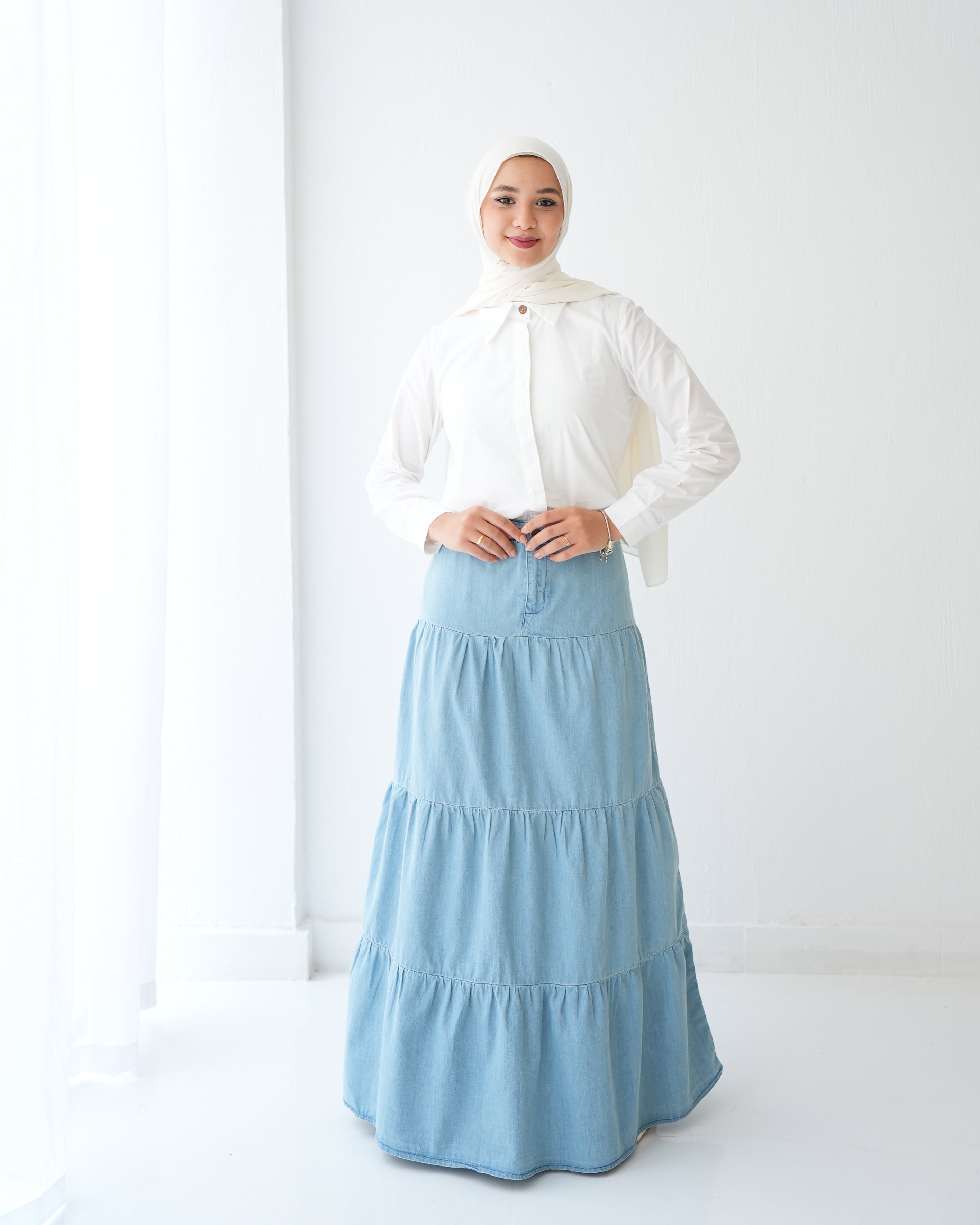 Denim Tiered Maxi Skirt Blue C8221