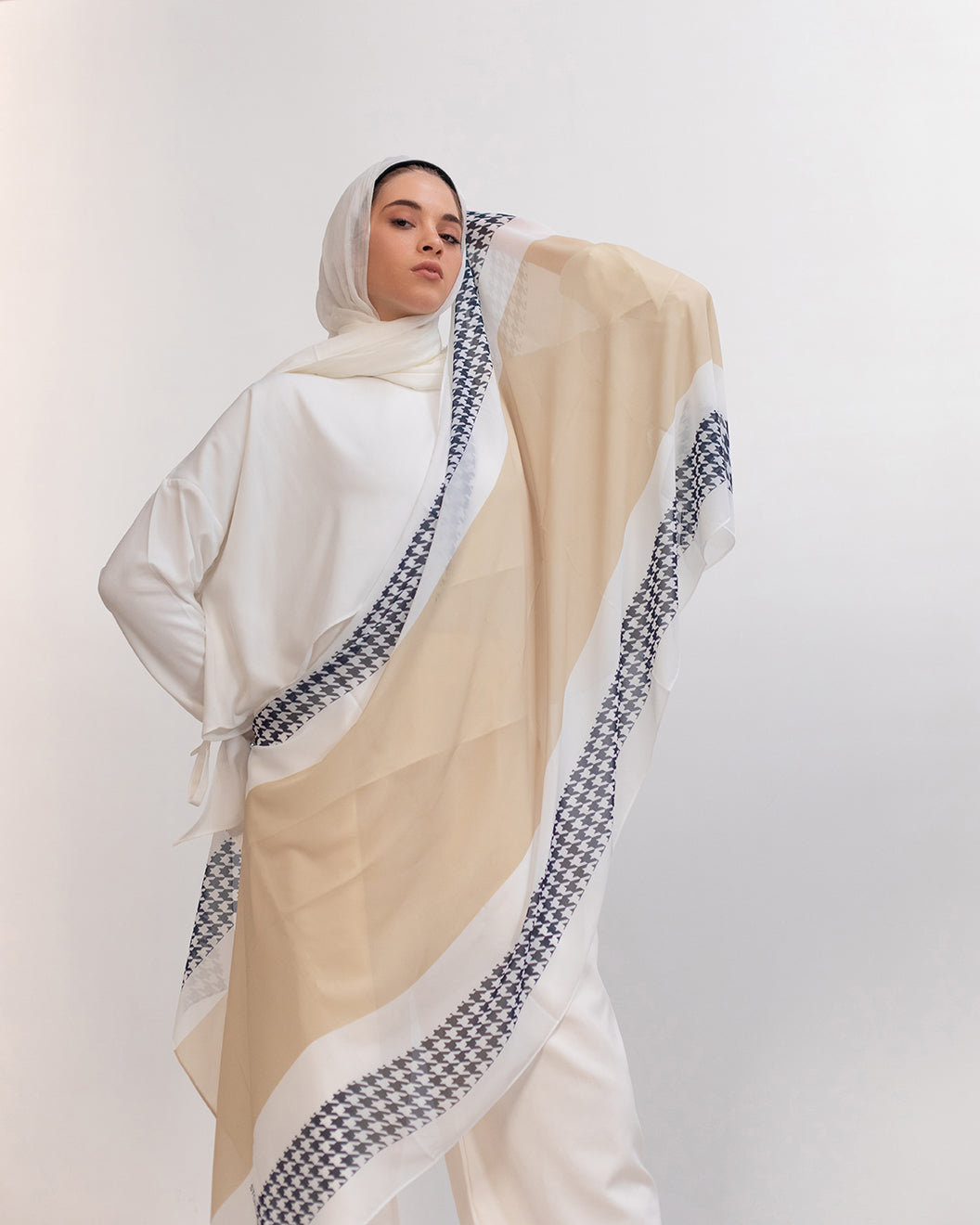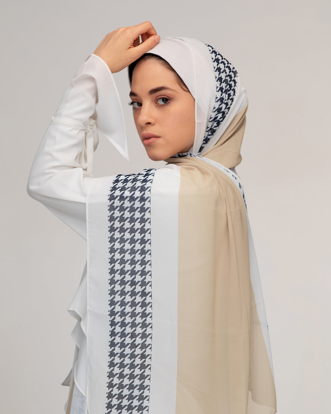The beige and white color of this exceptional scarf combined with the houndstooth pattern makes it extremely elegant and classy. You’ll definitely look so classy wearing this scarf!