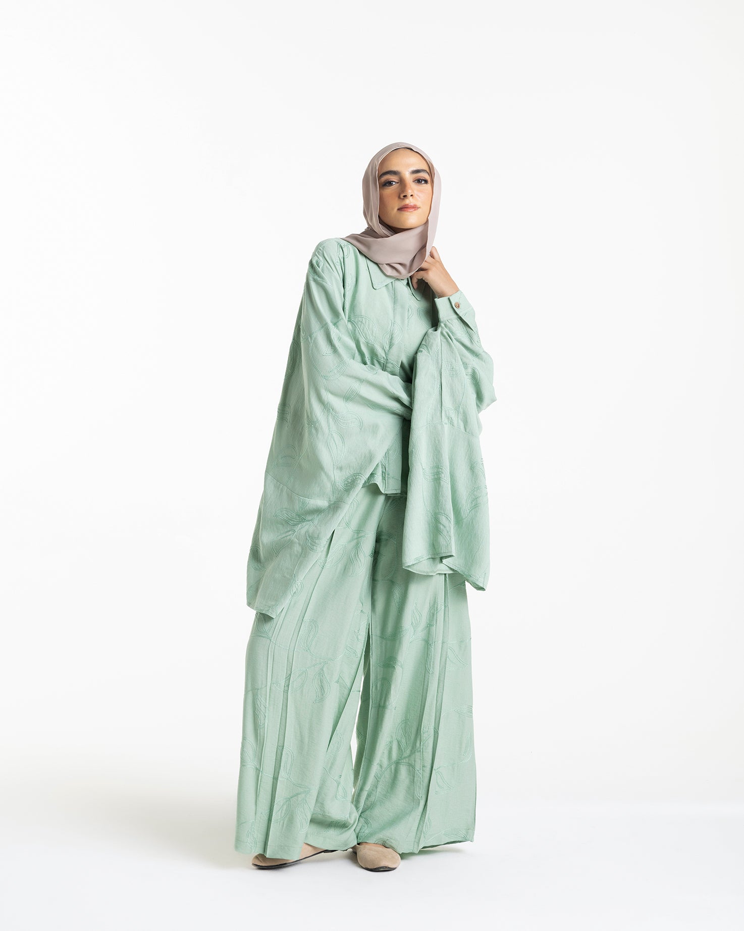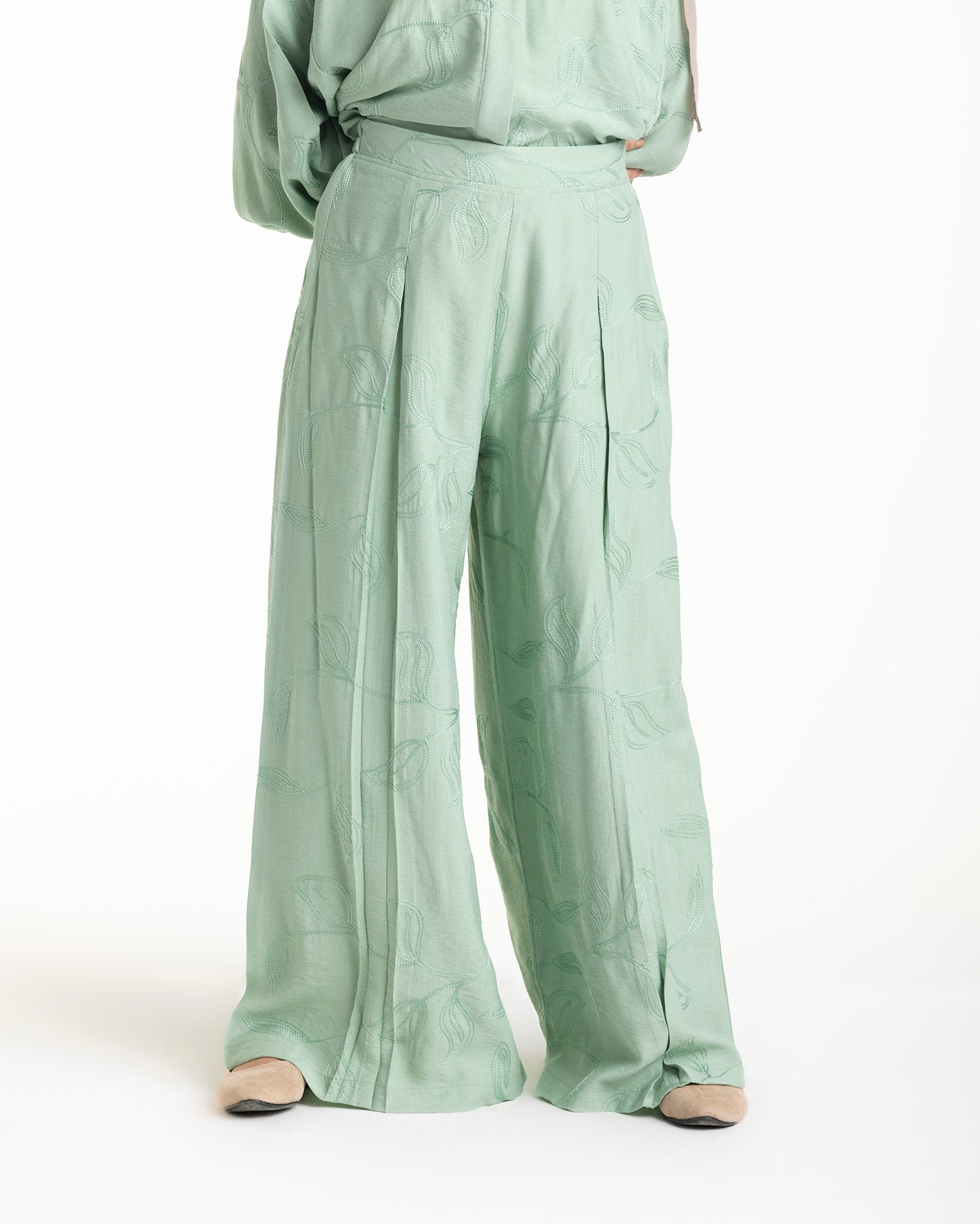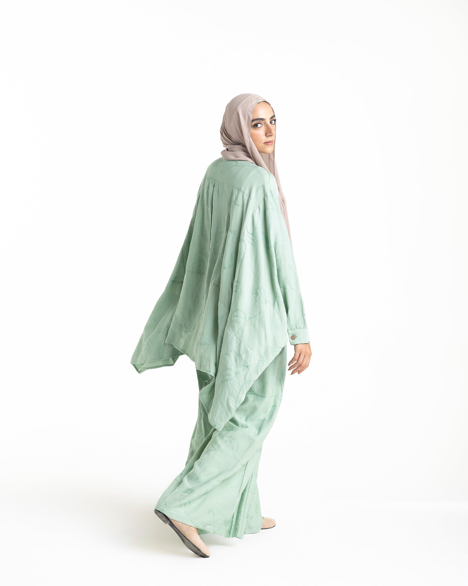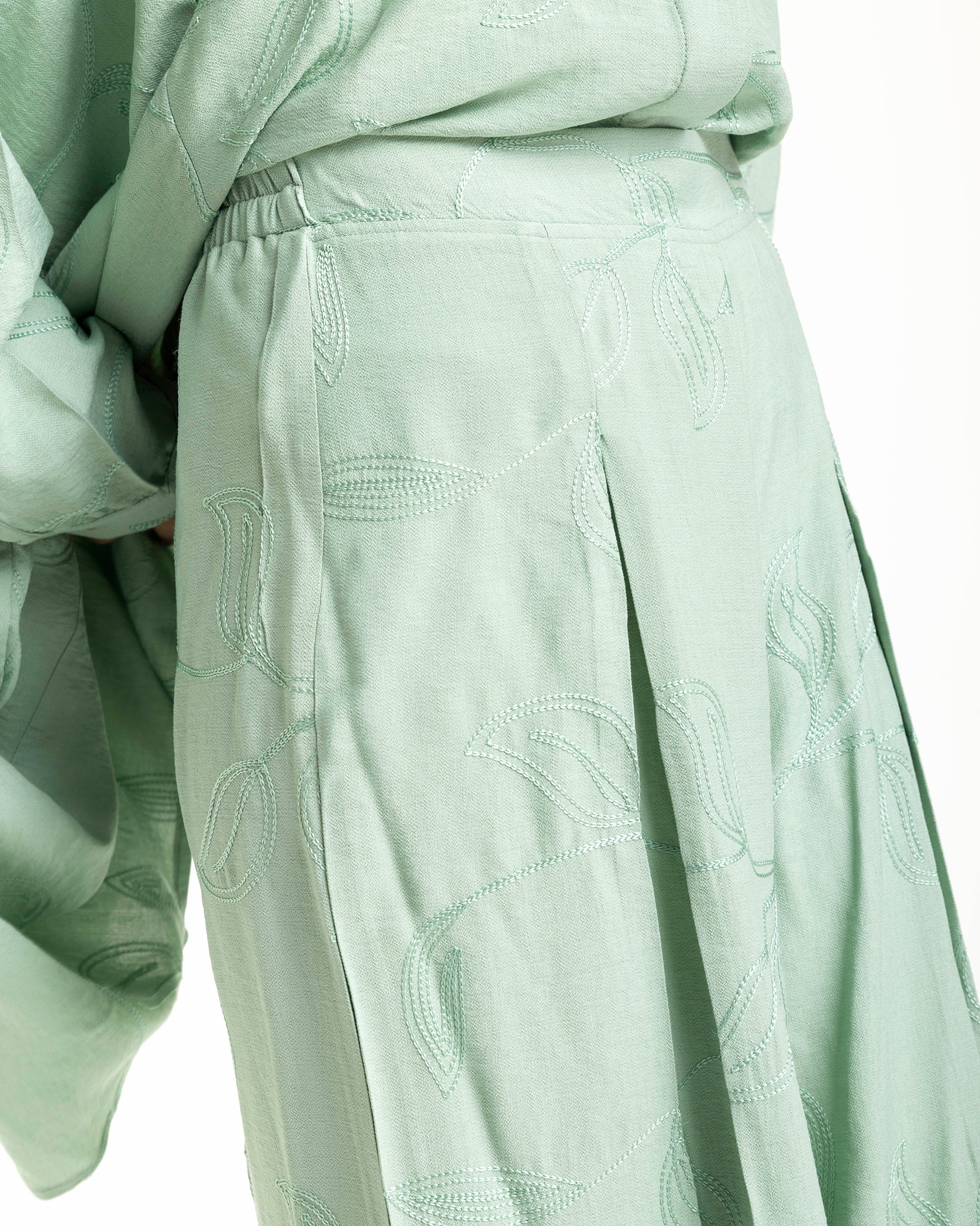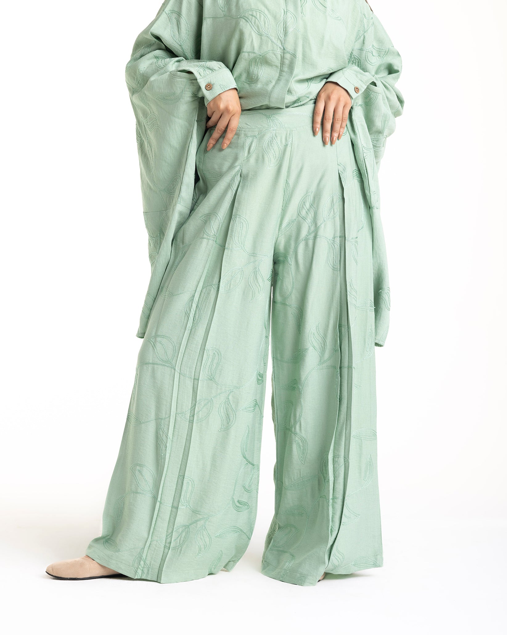 Step into a world of timeless elegance and effortless style with the embroidered linen wide leg pants by Dei Maison. These pants are a true reflection of our commitment to modest fashion, showcasing impeccable craftsmanship and attention to detail.