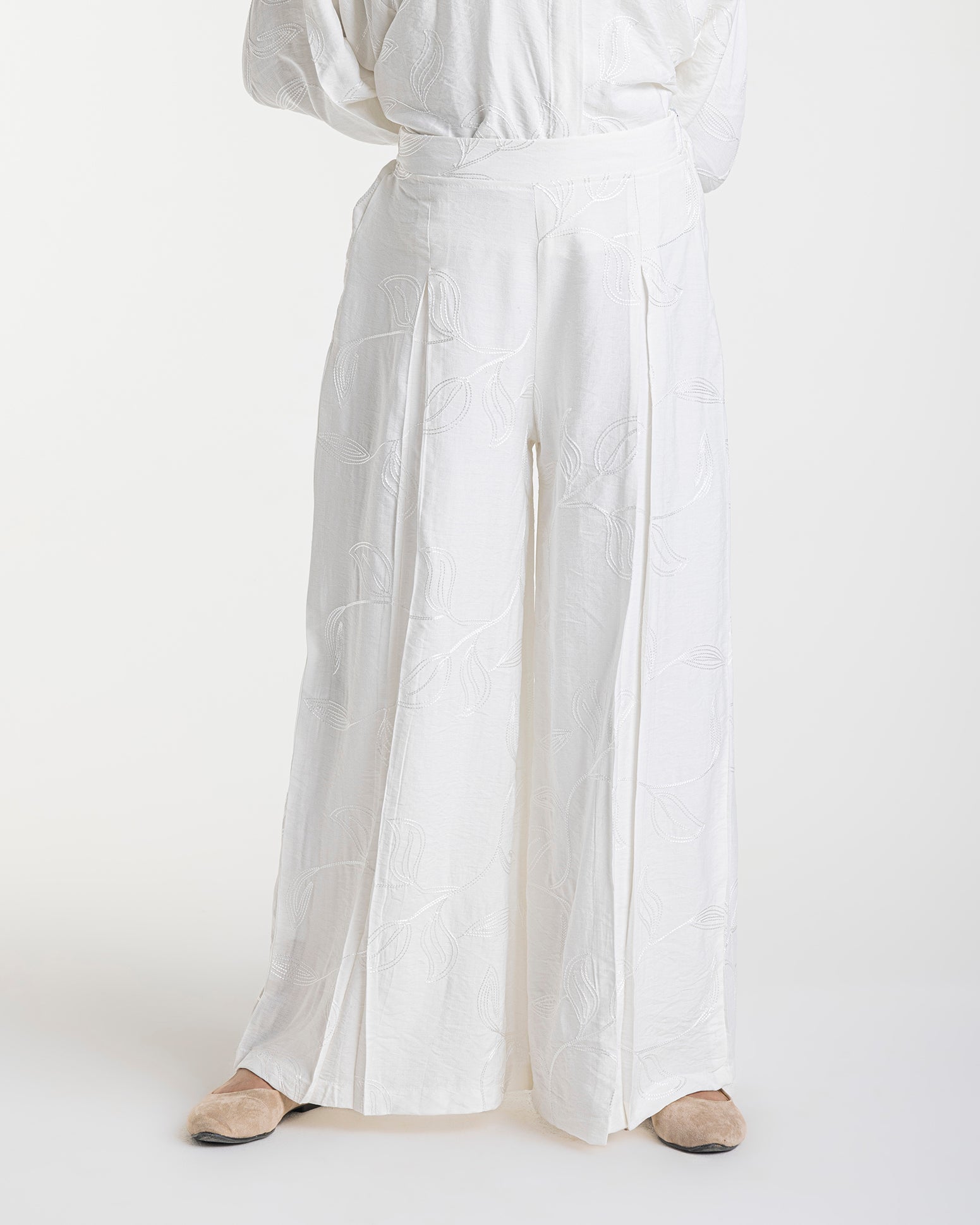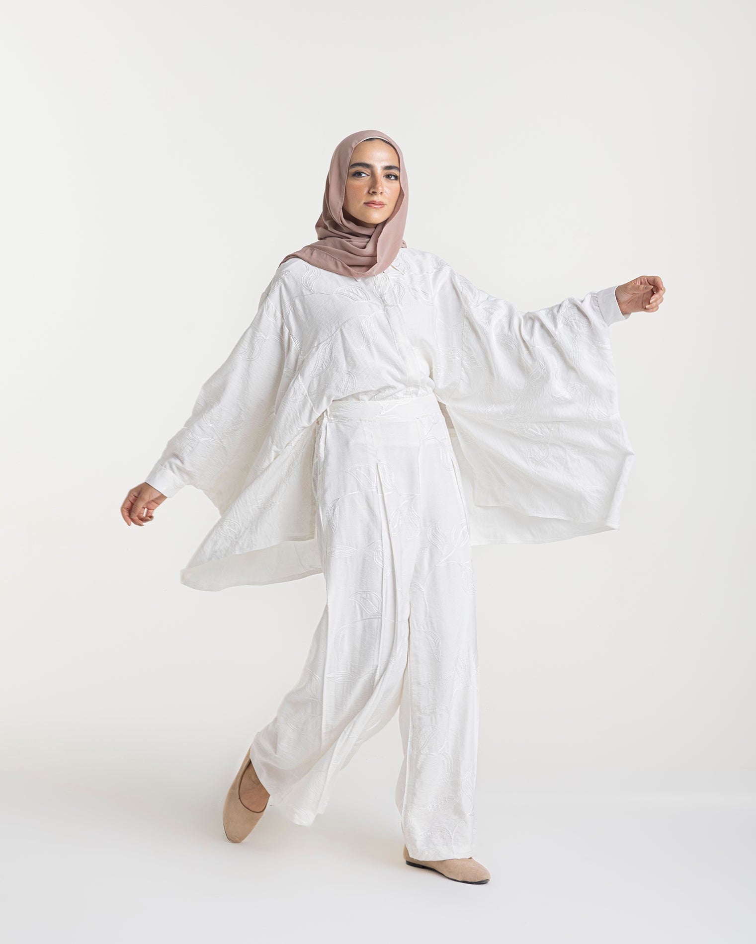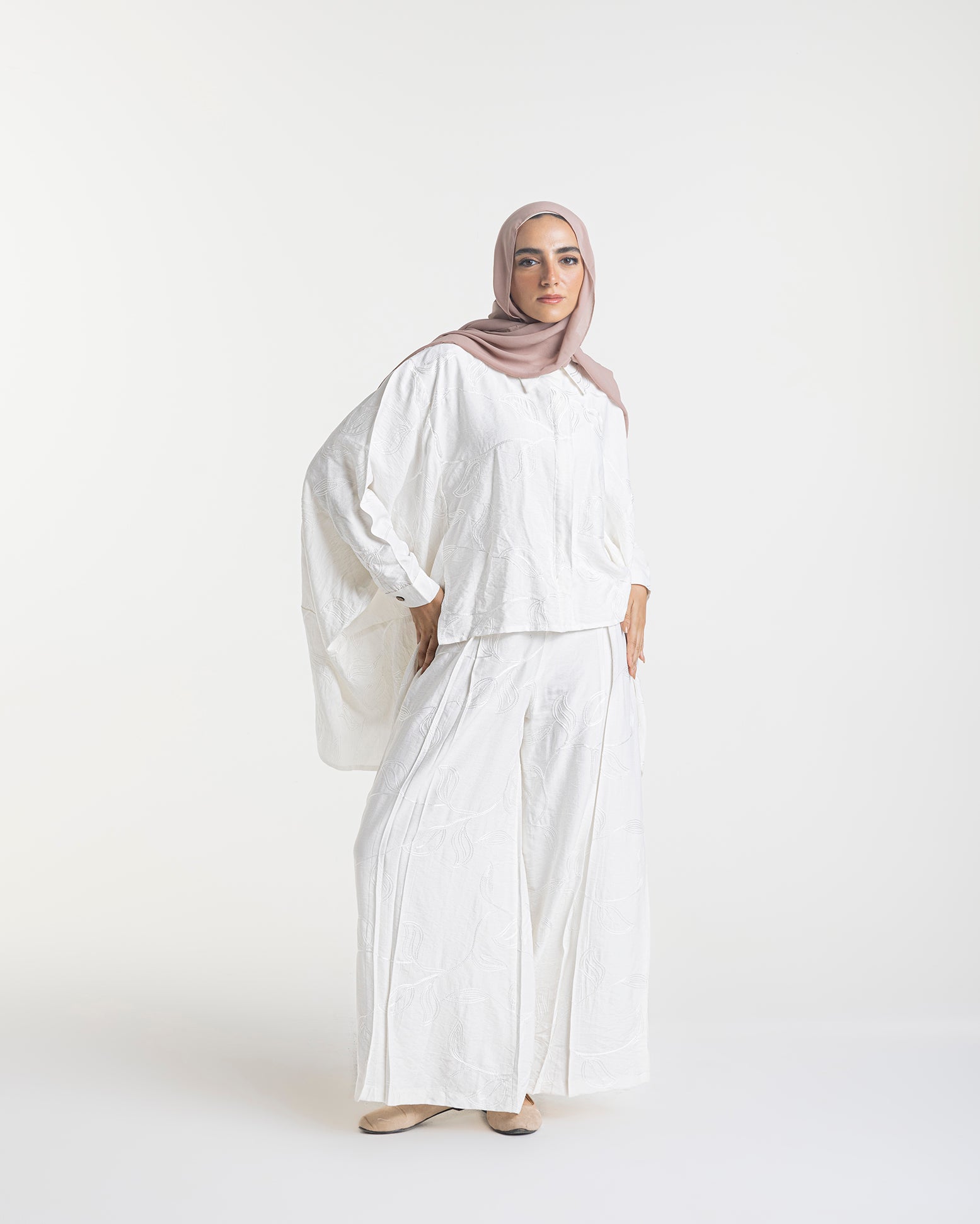 Step into a world of timeless elegance and effortless style with the embroidered linen wide leg pants by Dei Maison. These pants are a true reflection of our commitment to modest fashion, showcasing impeccable craftsmanship and attention to detail.