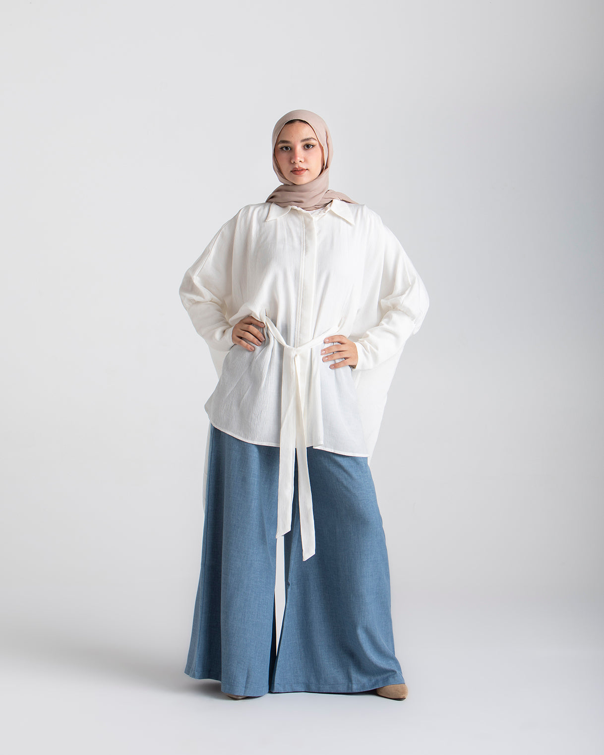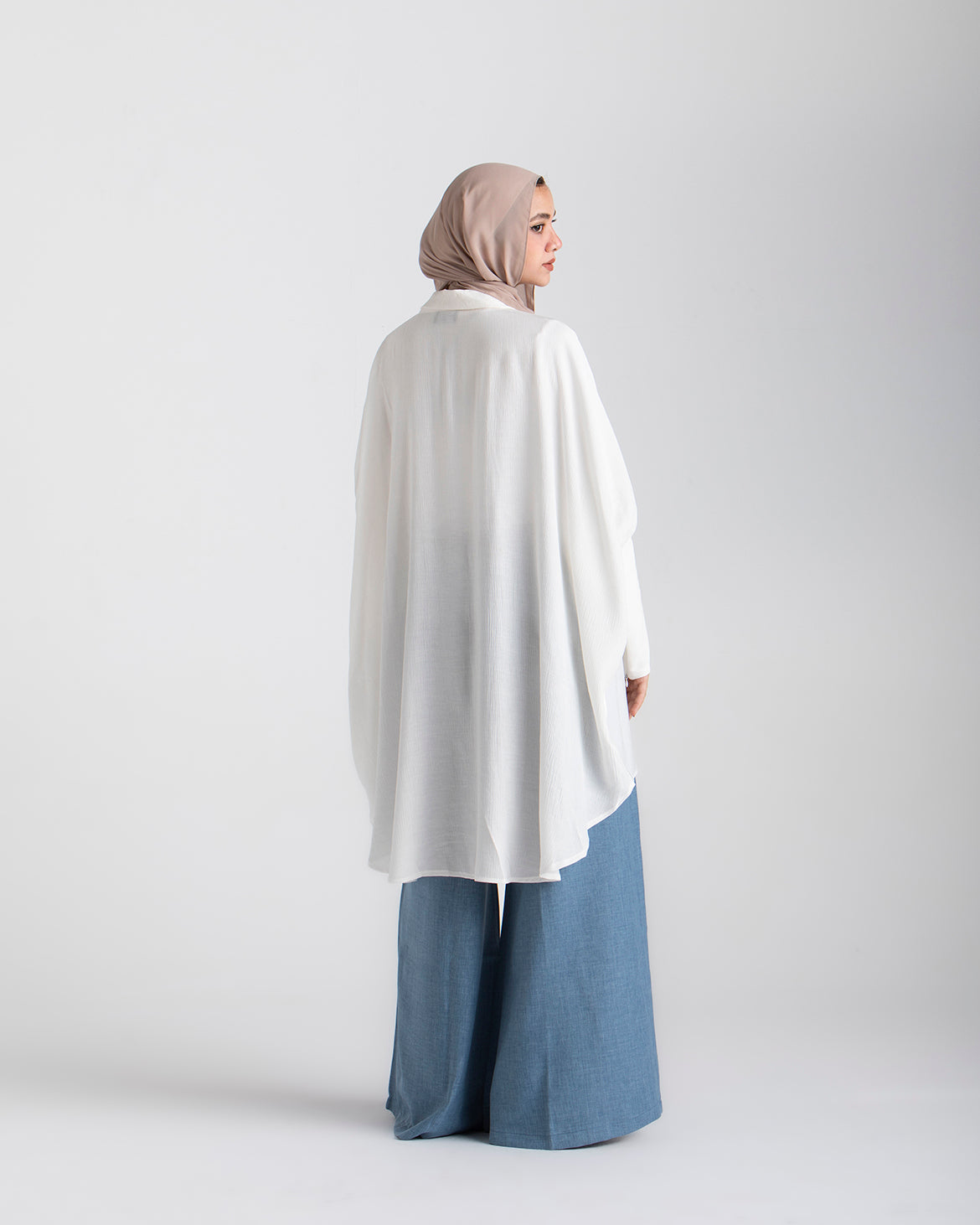Free Size Linen Buttoned Chemise Offwhite C2231
