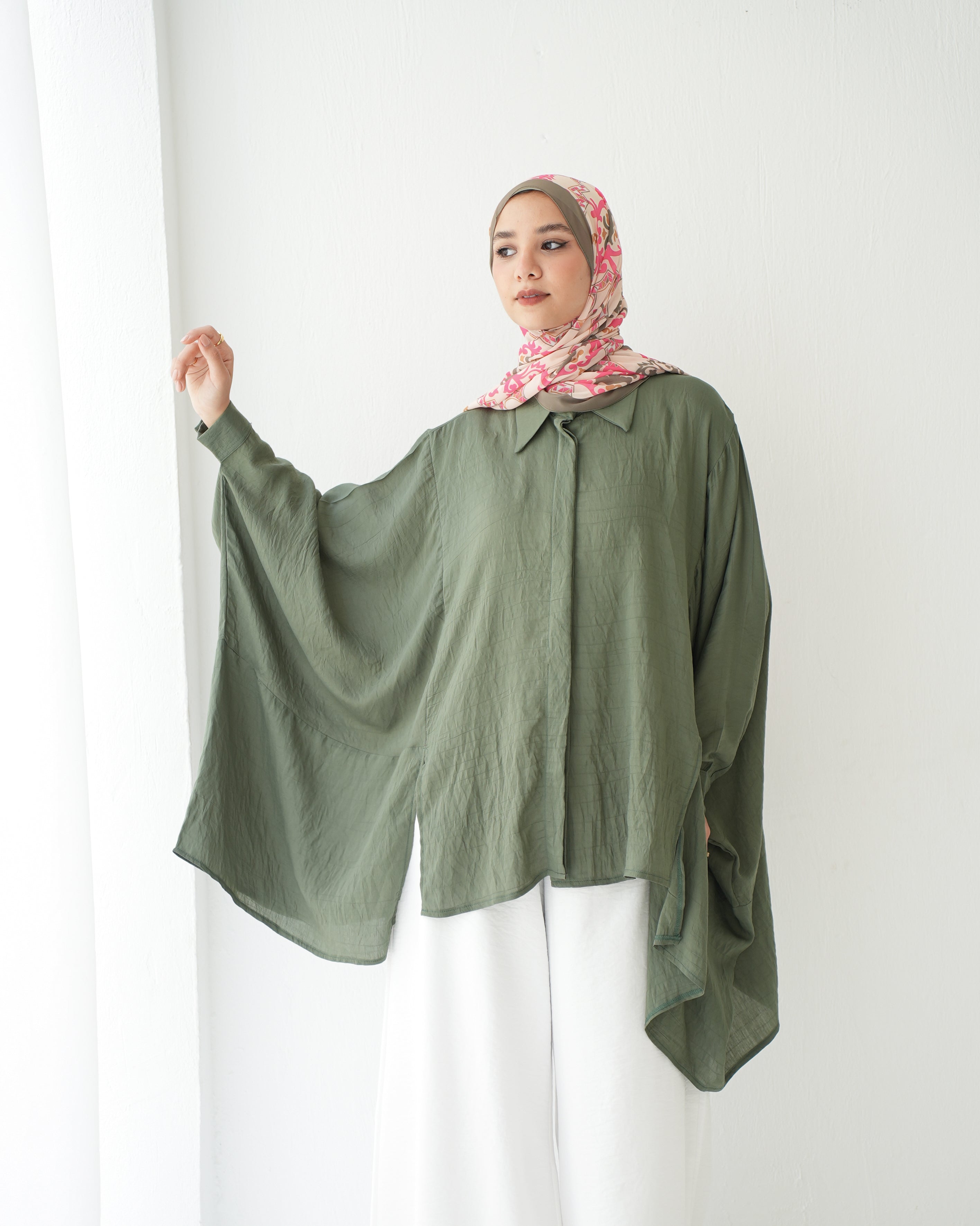 Free Size Shirt Poncho Olive Code 2191