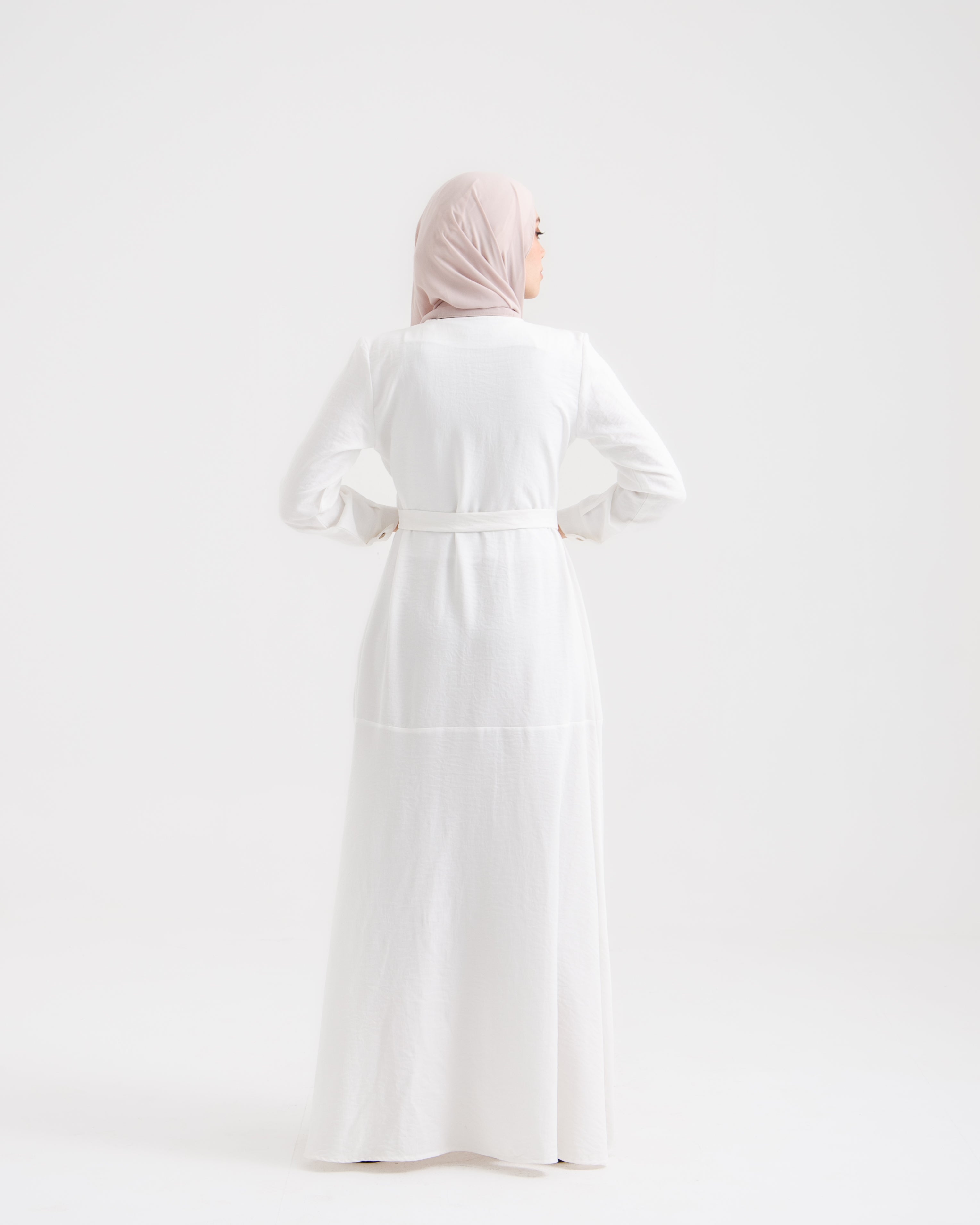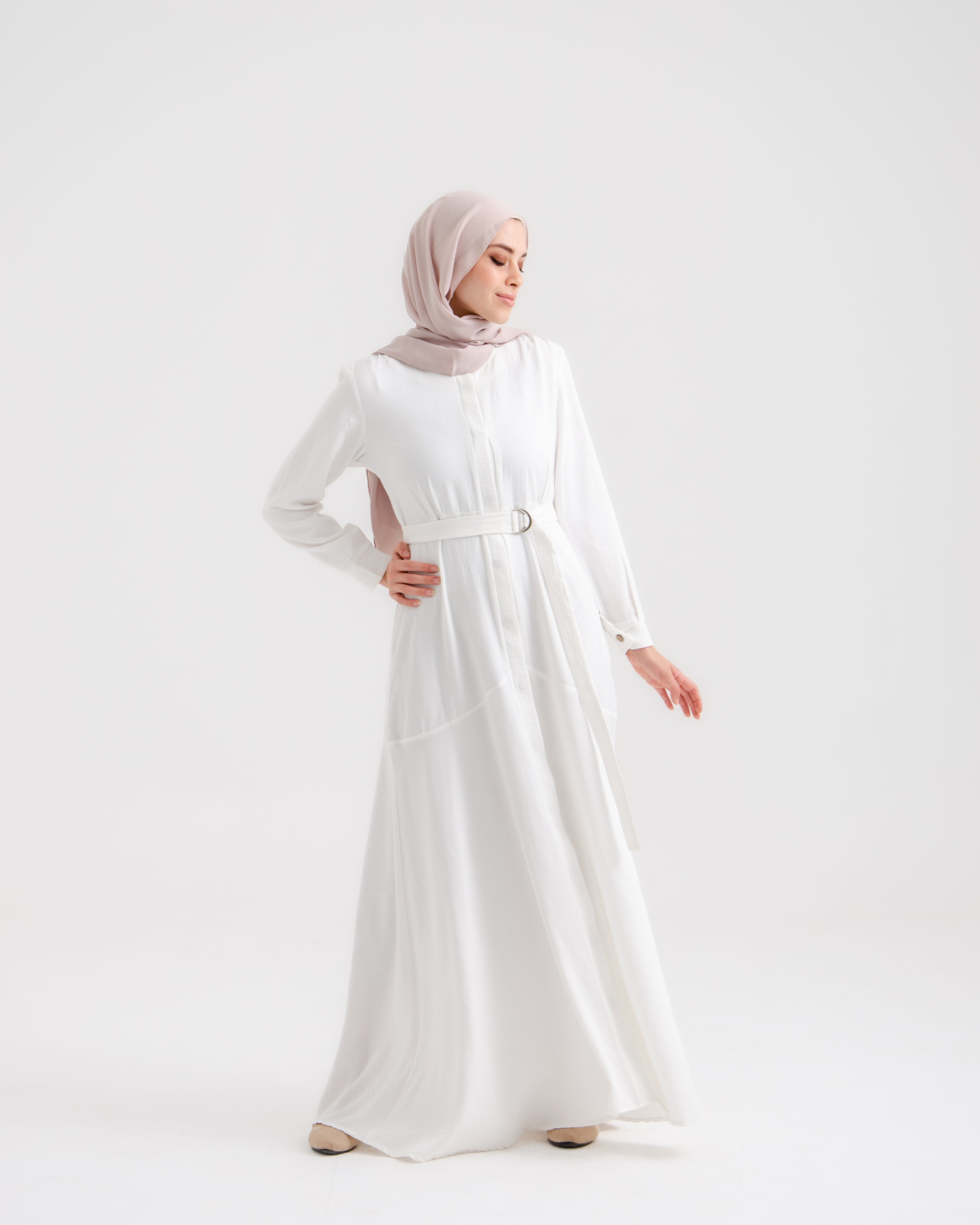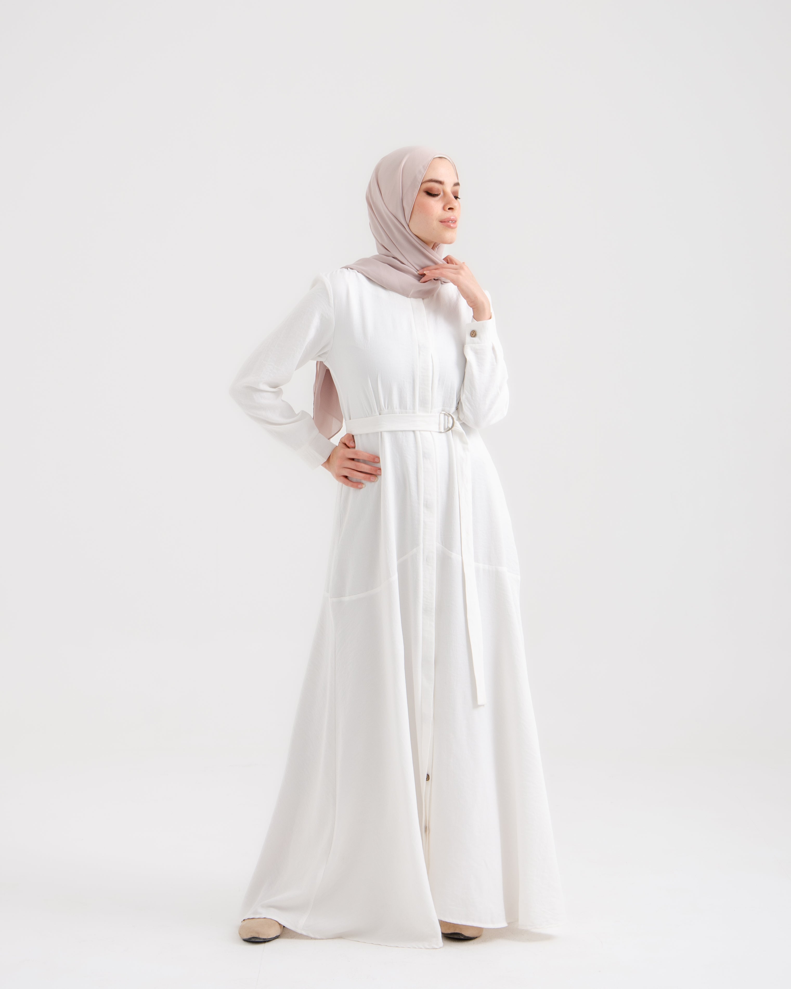 Stunning French linen fabric, sleek buttoned cut all the way down and practical cuffs all combine to make for a dress that suits through summer season.