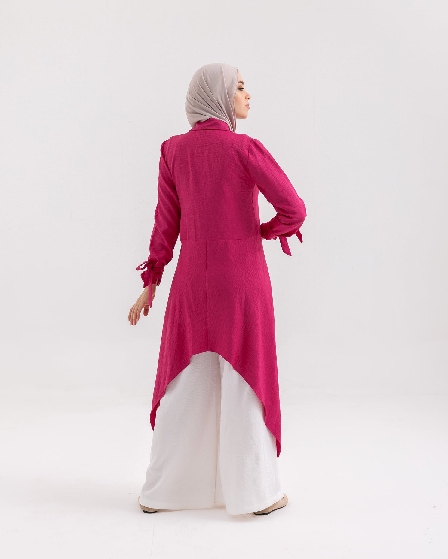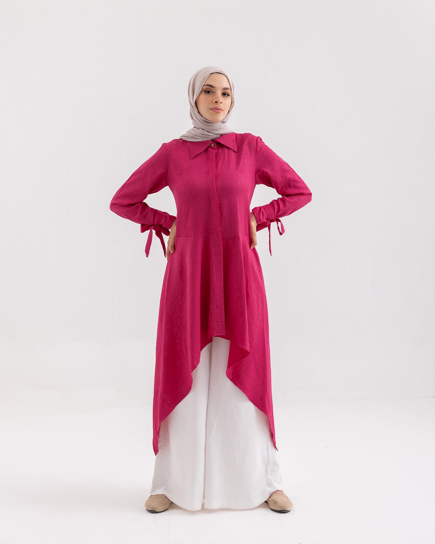 High Low Buttoned Chemise Hot Pink C191