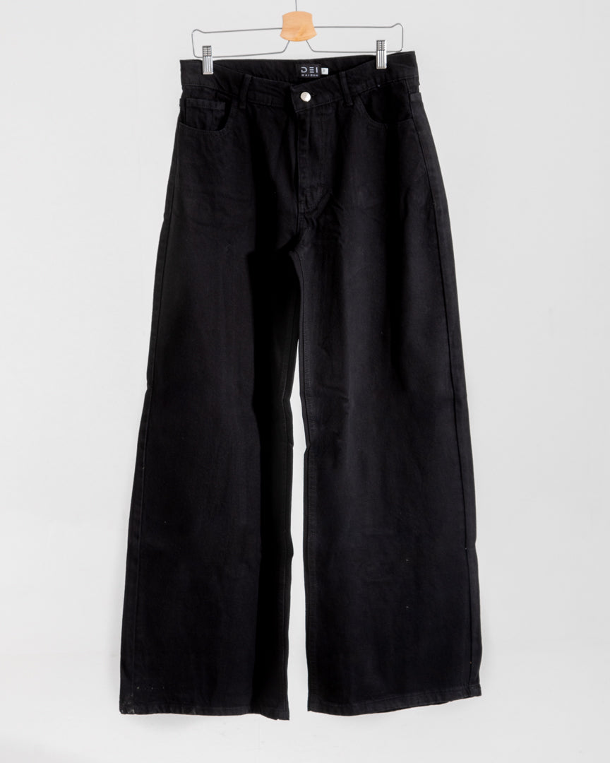 High Waisted Wide Leg Denim Pants Black C190