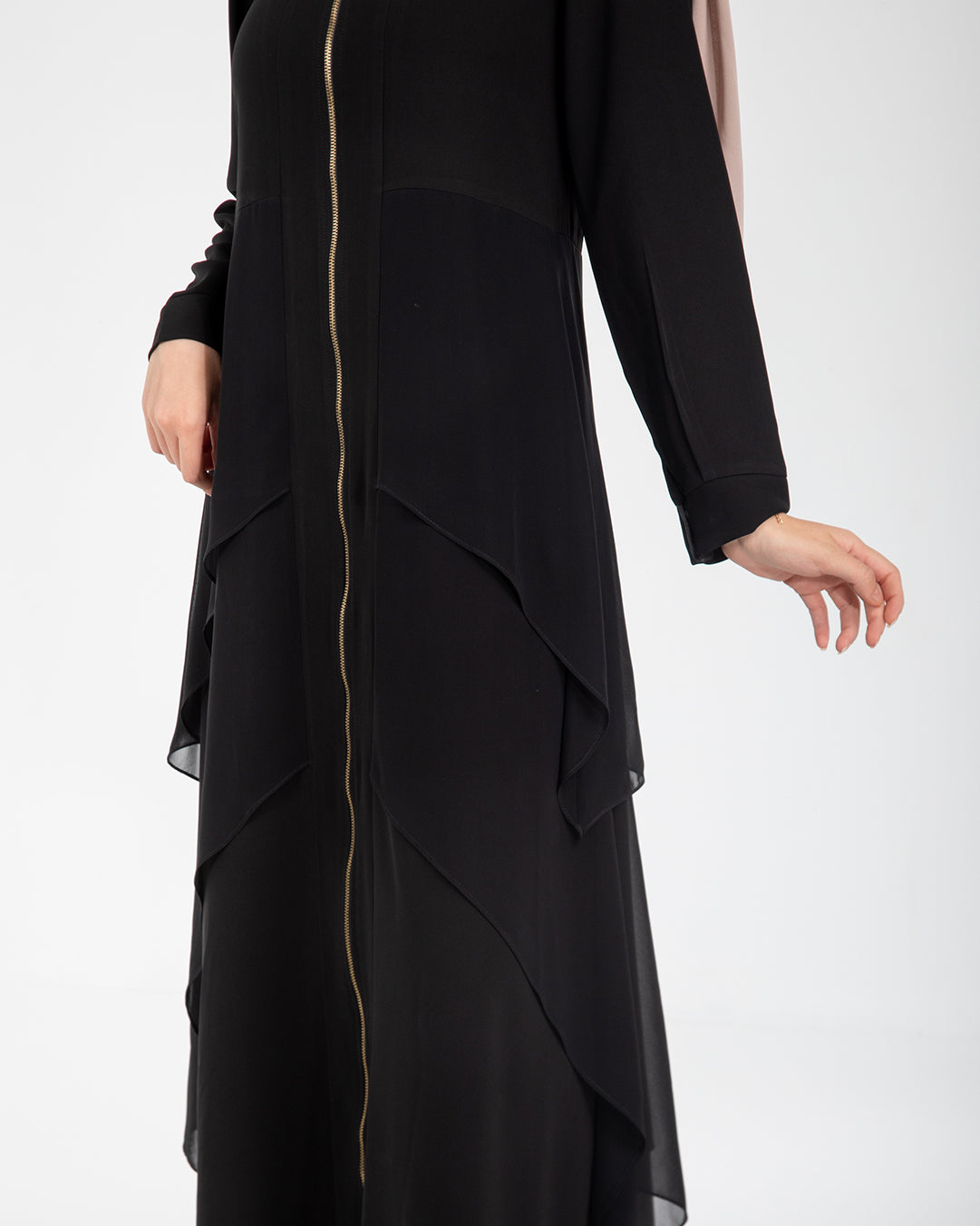 Layered Chiffon Abaya with Gold Zipper C161
