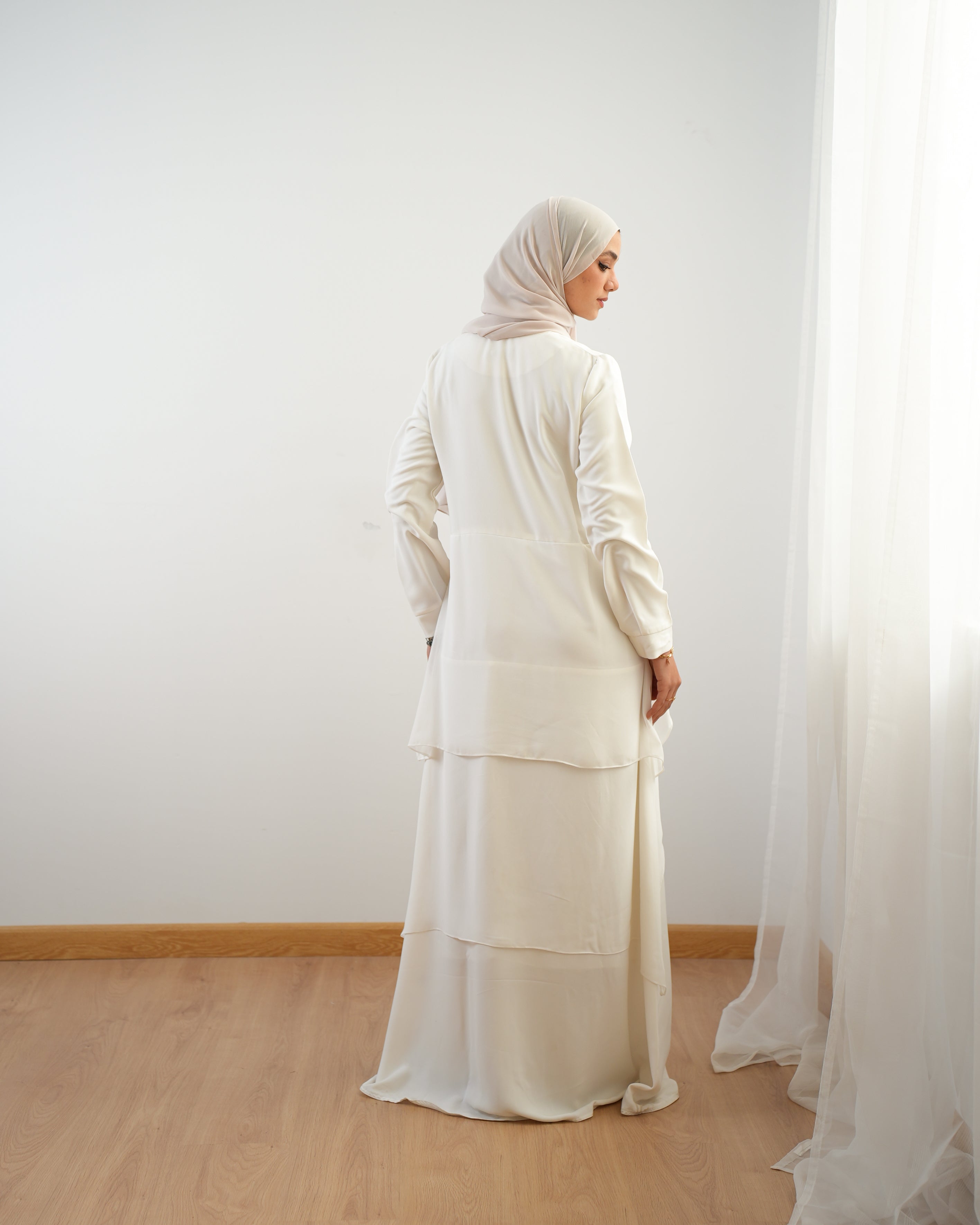 Incredibly sleek and elegant, our new abaya is adorned with gorgeous front Silver zipper and multi-layered drapes, beautiful enough for those who want to make a statement!