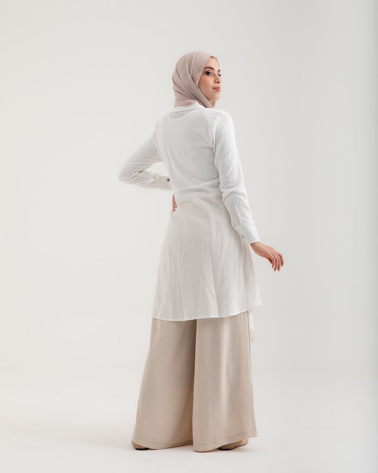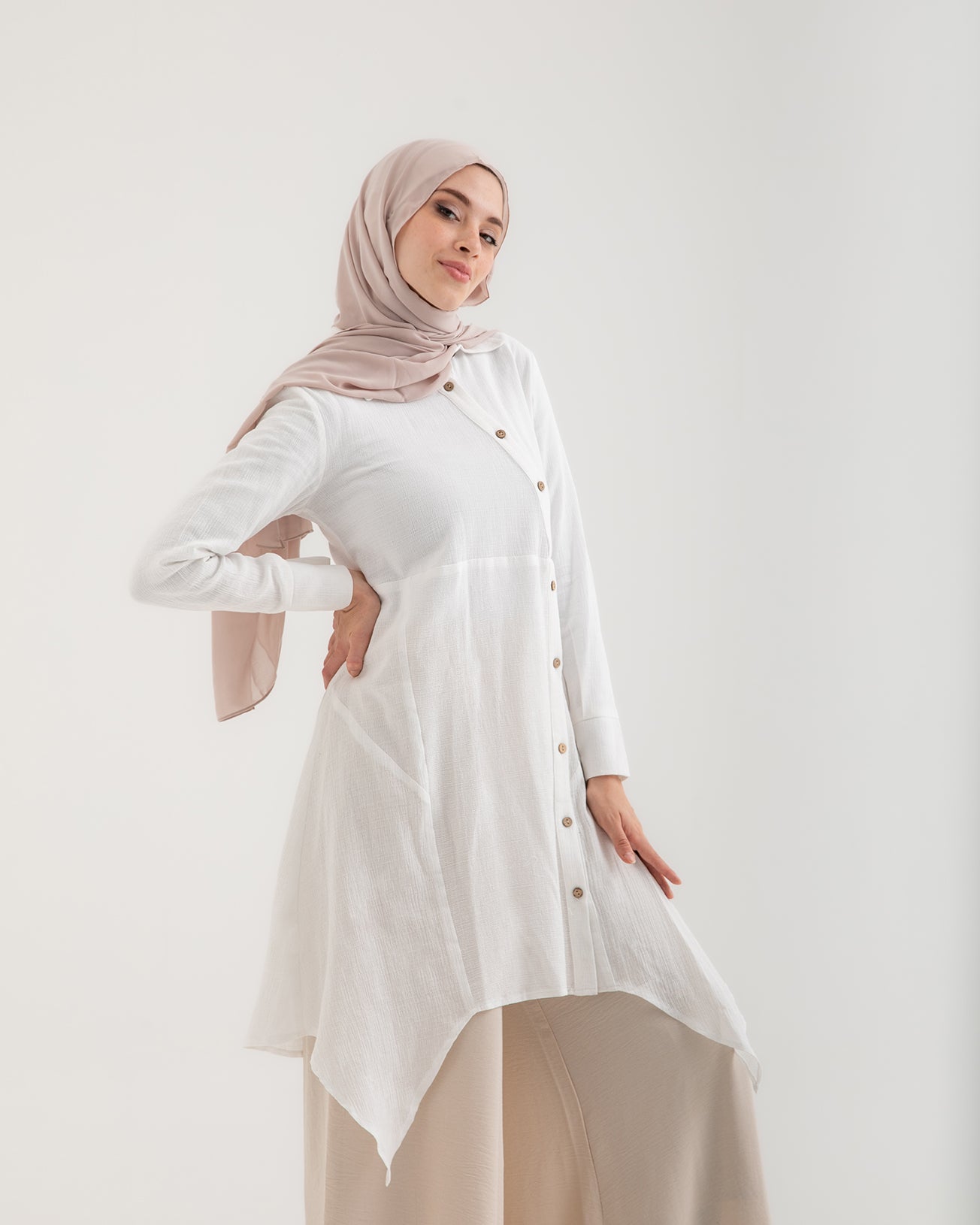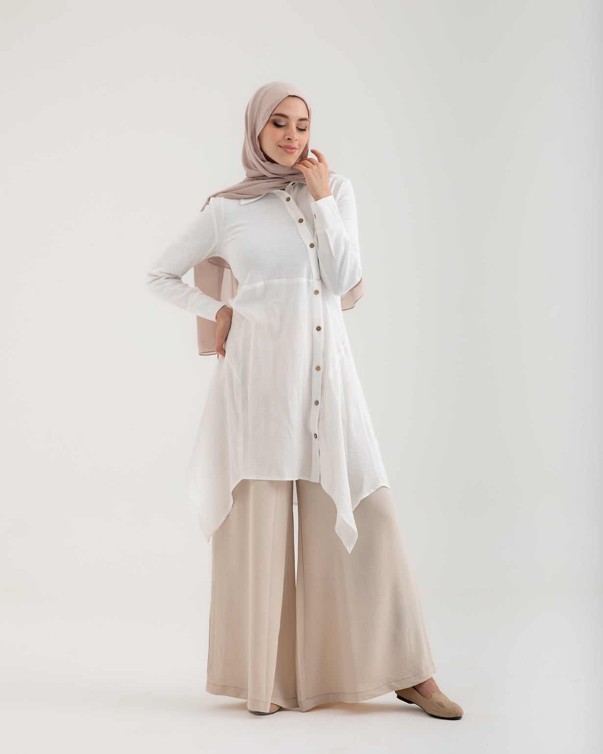 Slip this chemise of soft linen fabric on on extra hot days and style it with either wide pants or a skirt for a modest look.