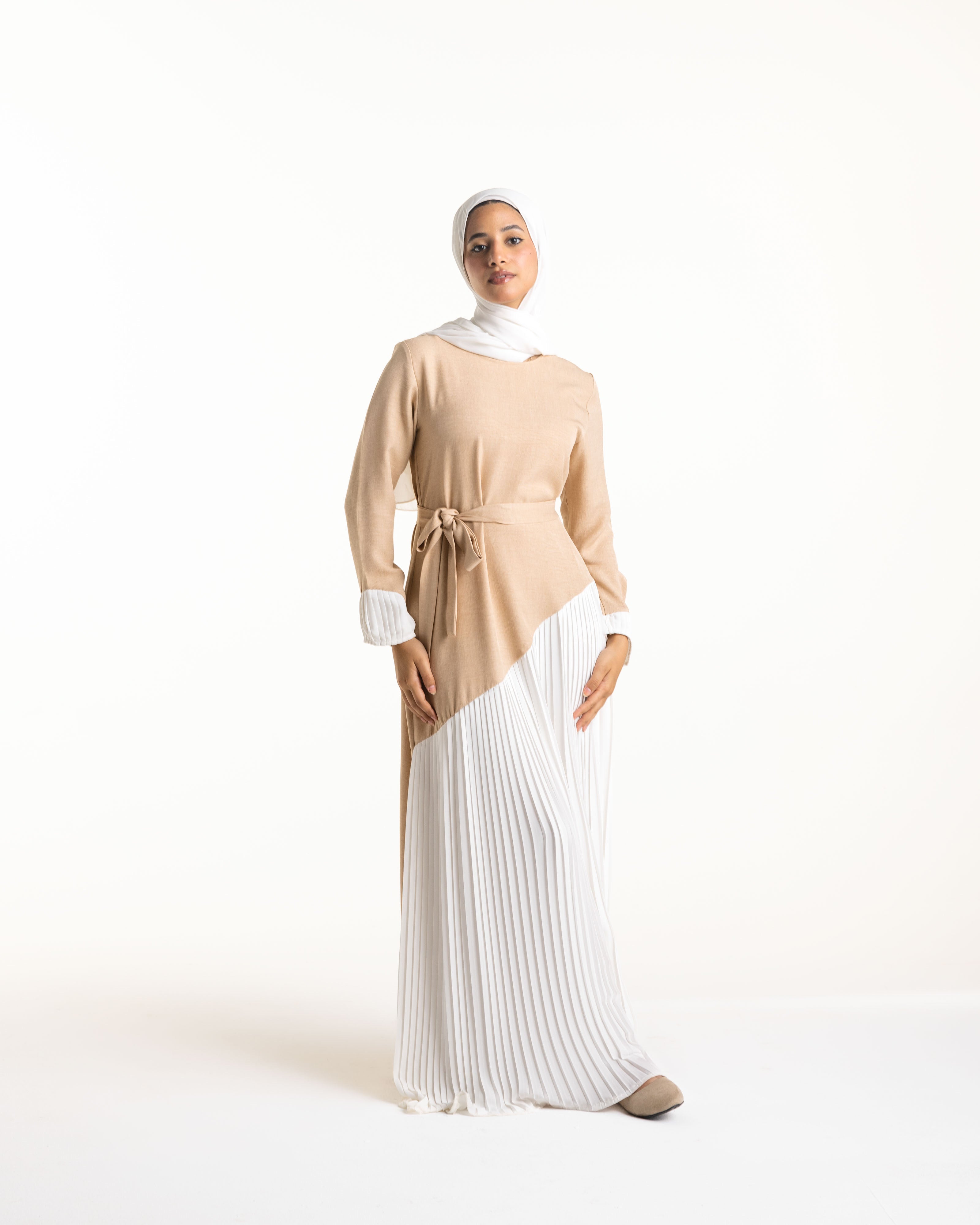 Linen Pleated Dress Beige C742