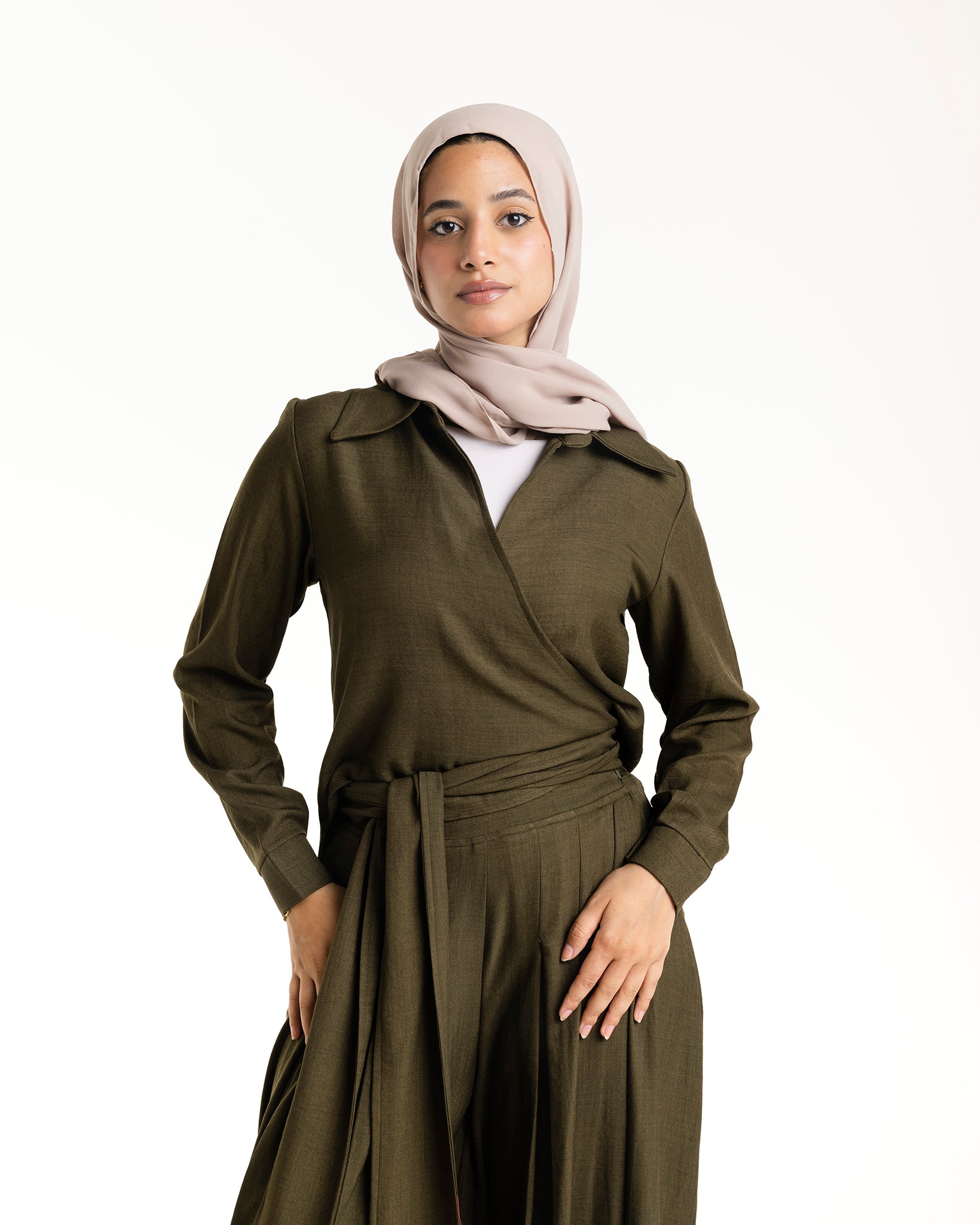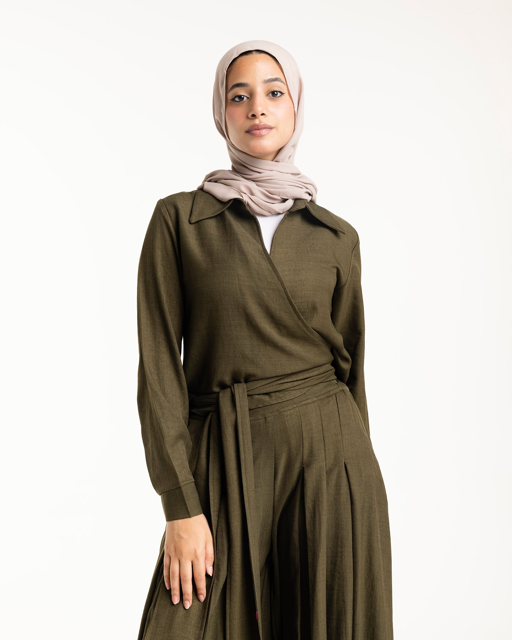 Its trendy unique solid color, soft light fabric, asymmetric length, collar and side wrap style all make it a fabulous chemise that’s totally worth an immediate purchase!