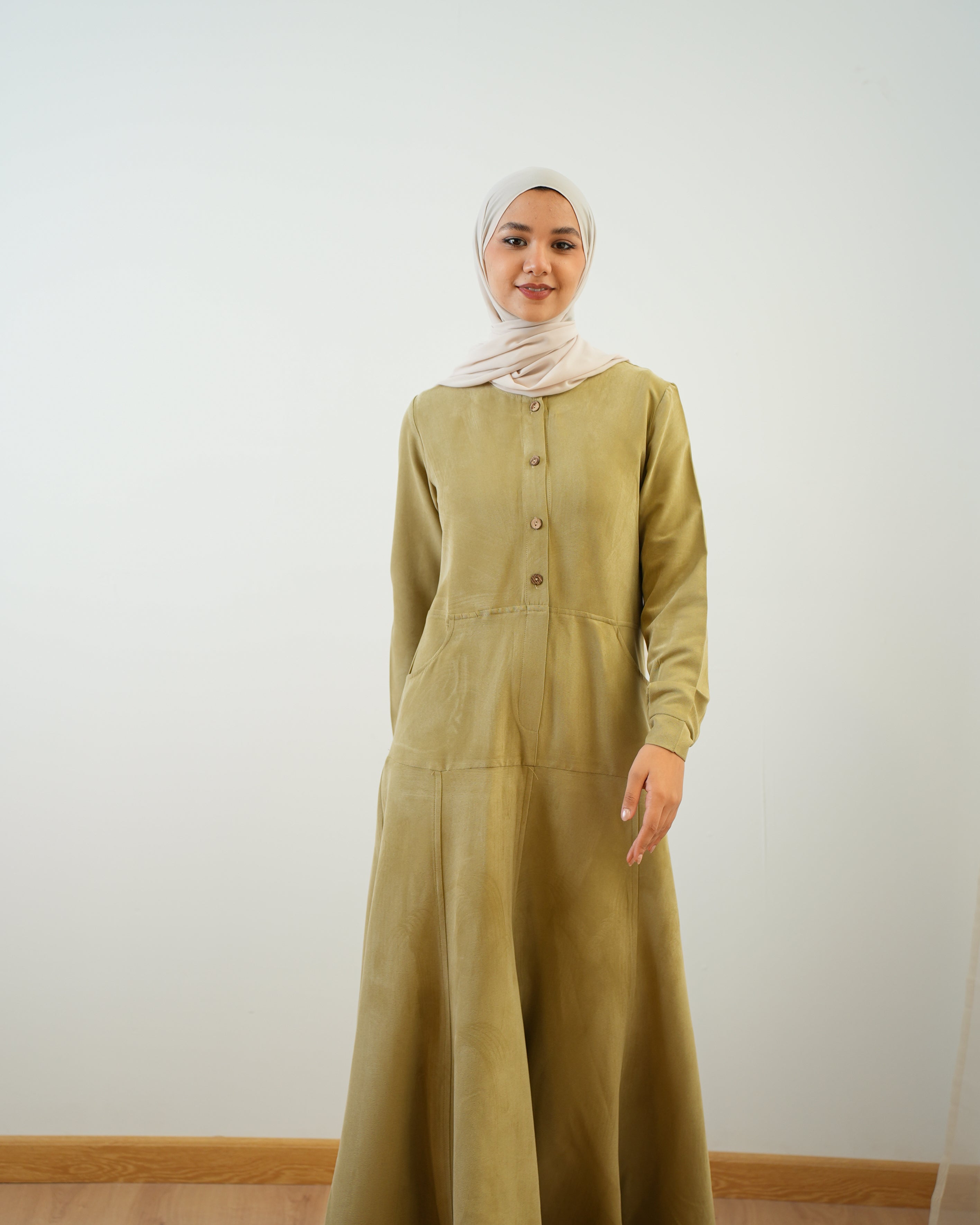 Modest Suede Buttoned Dress with Pockets Pistachio C140