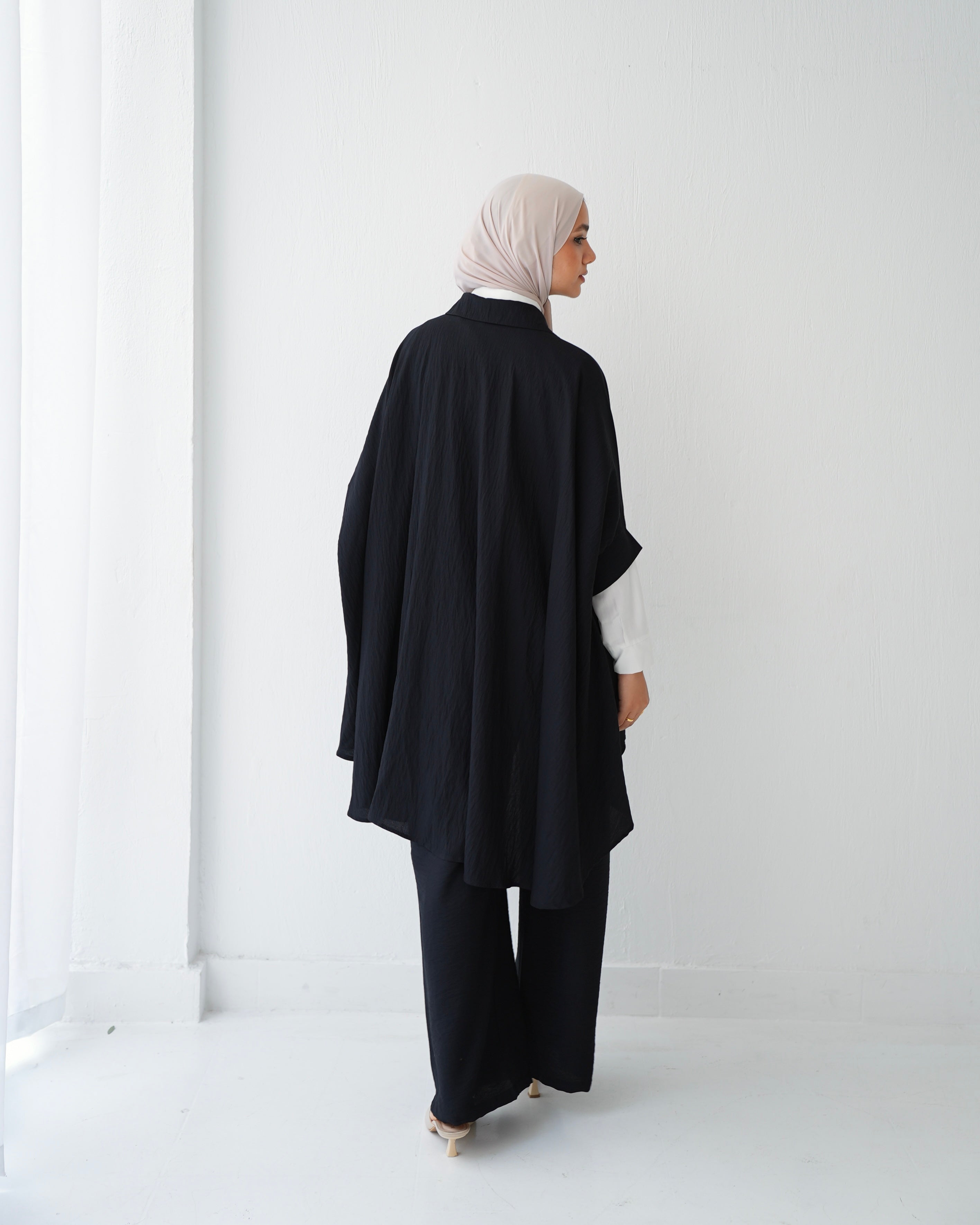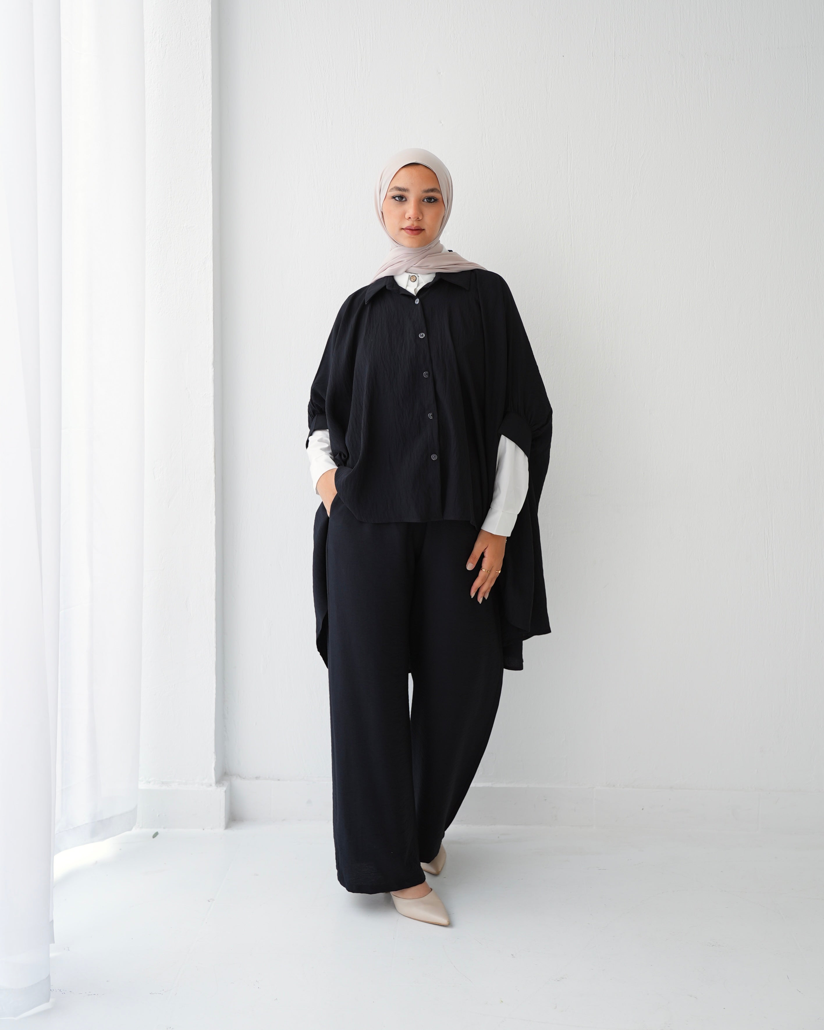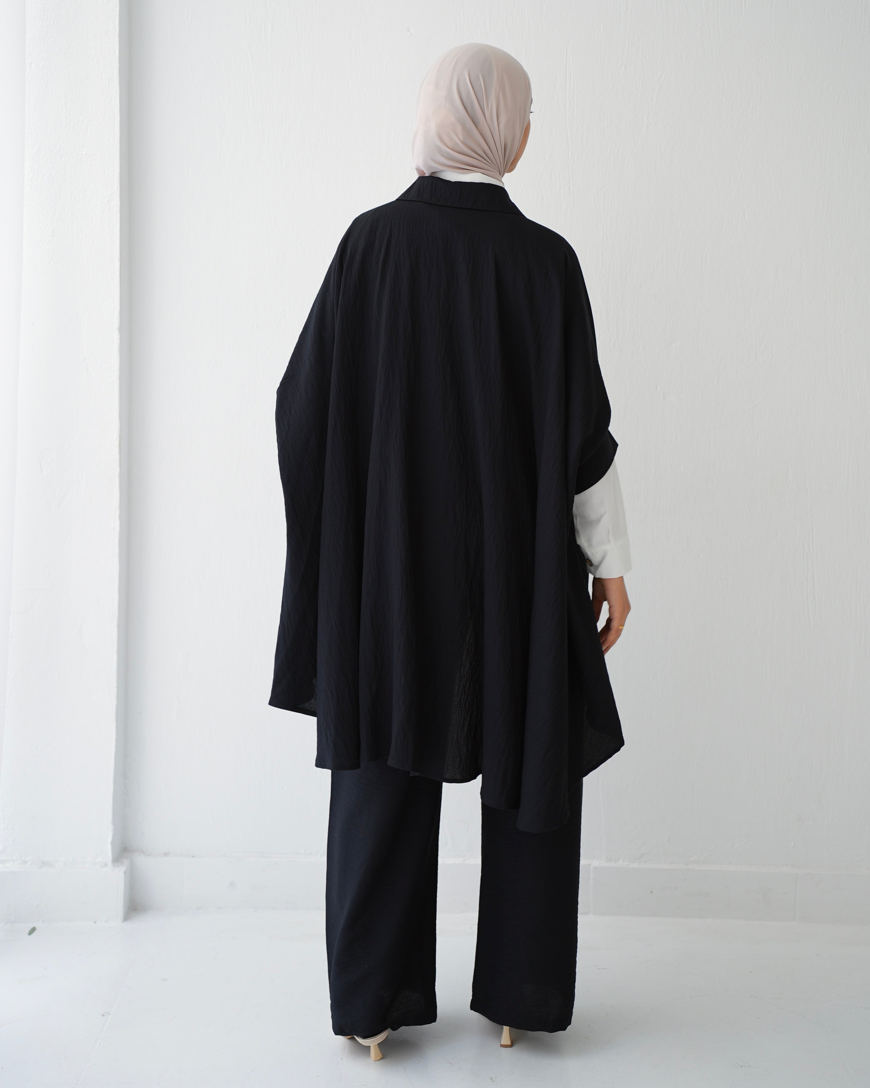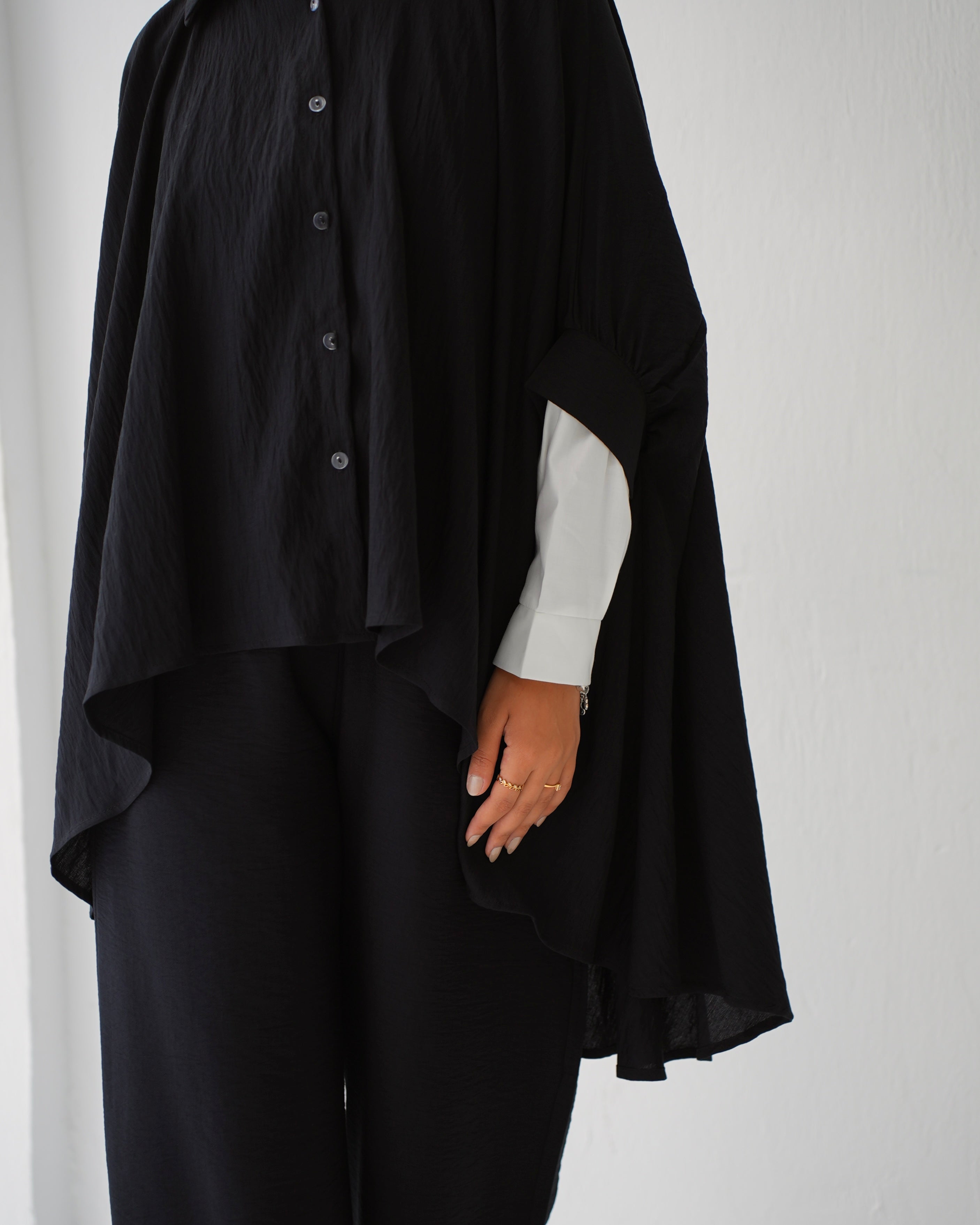 - Over Sized Poncho and Pants Set Black C11063
