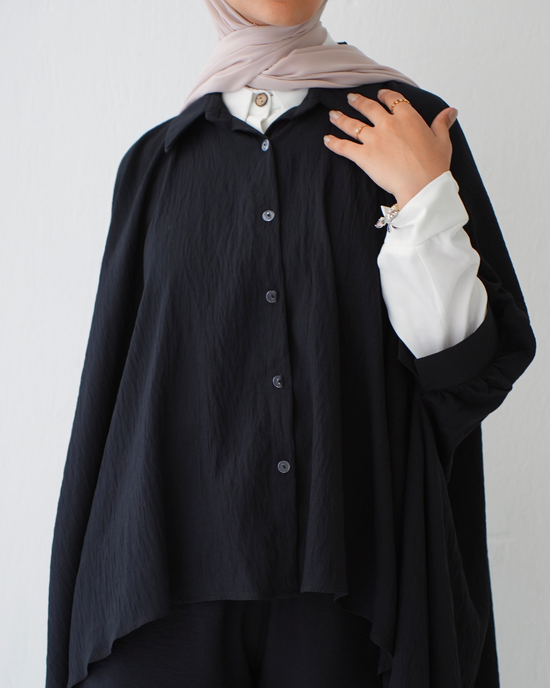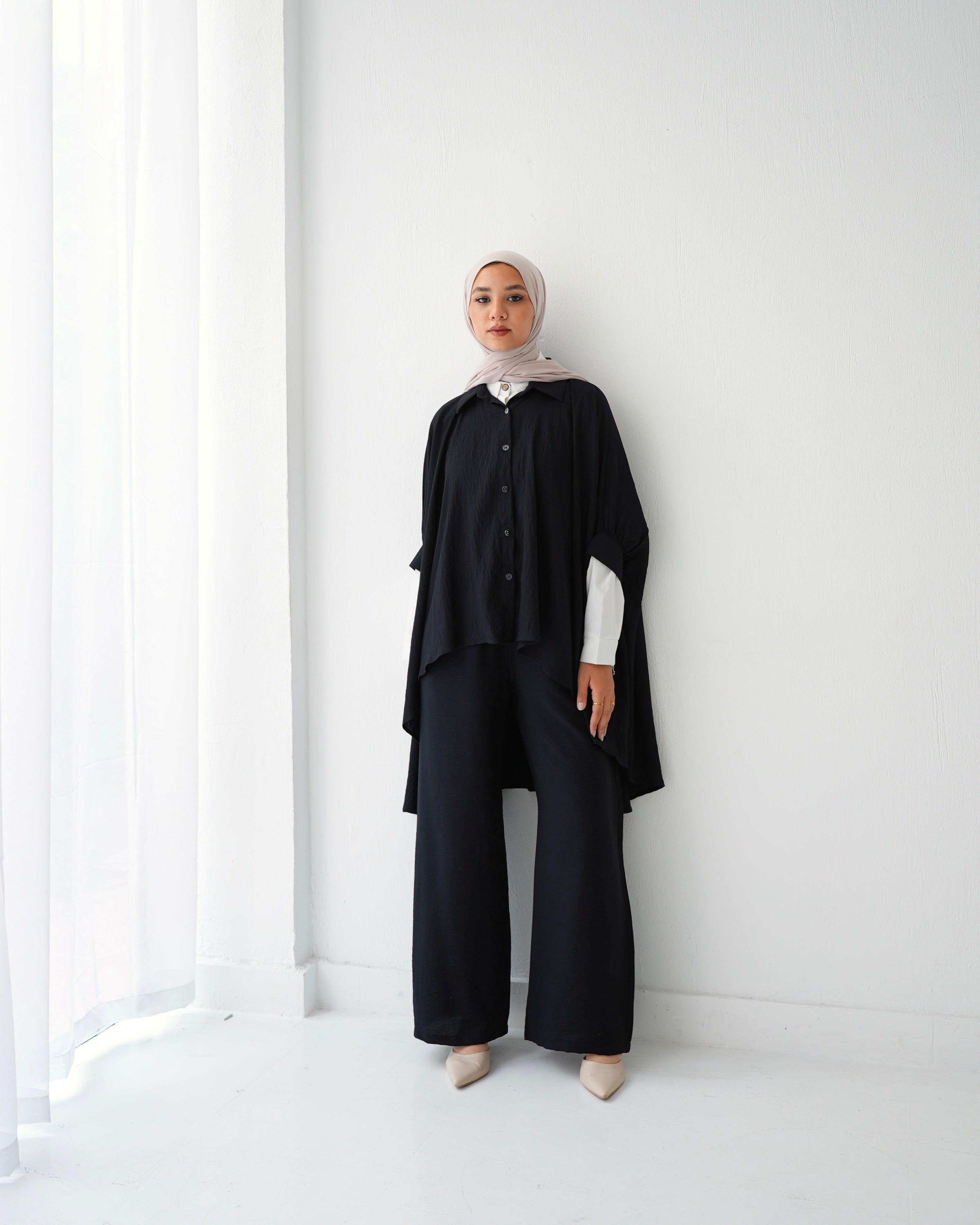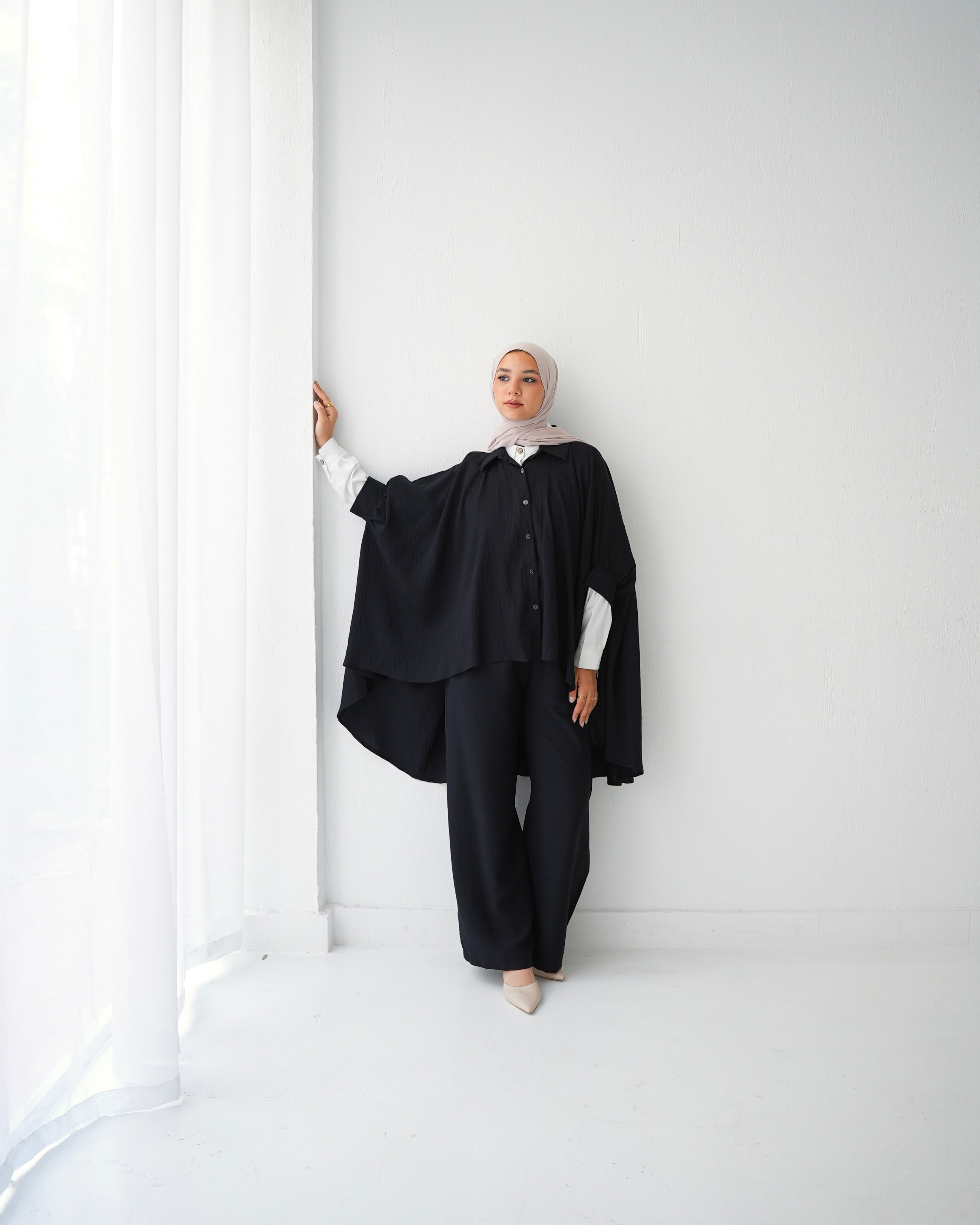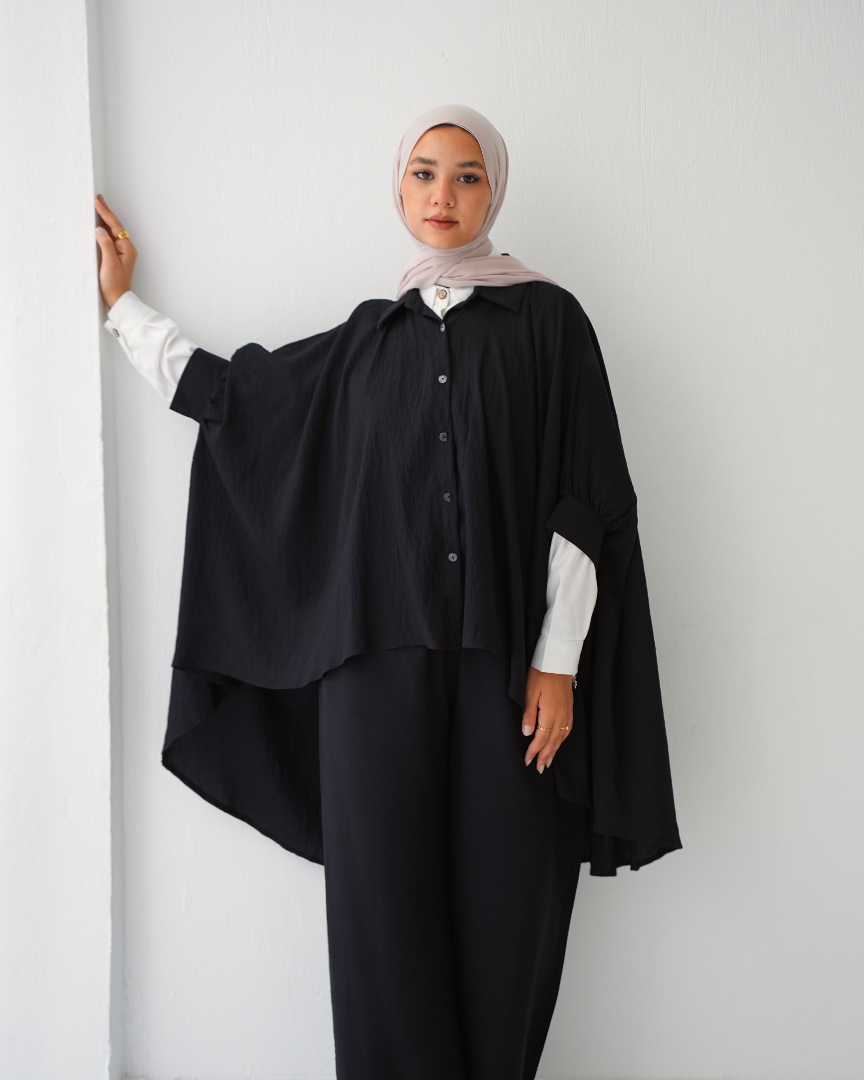 - Over Sized Poncho and Pants Set Black C11063