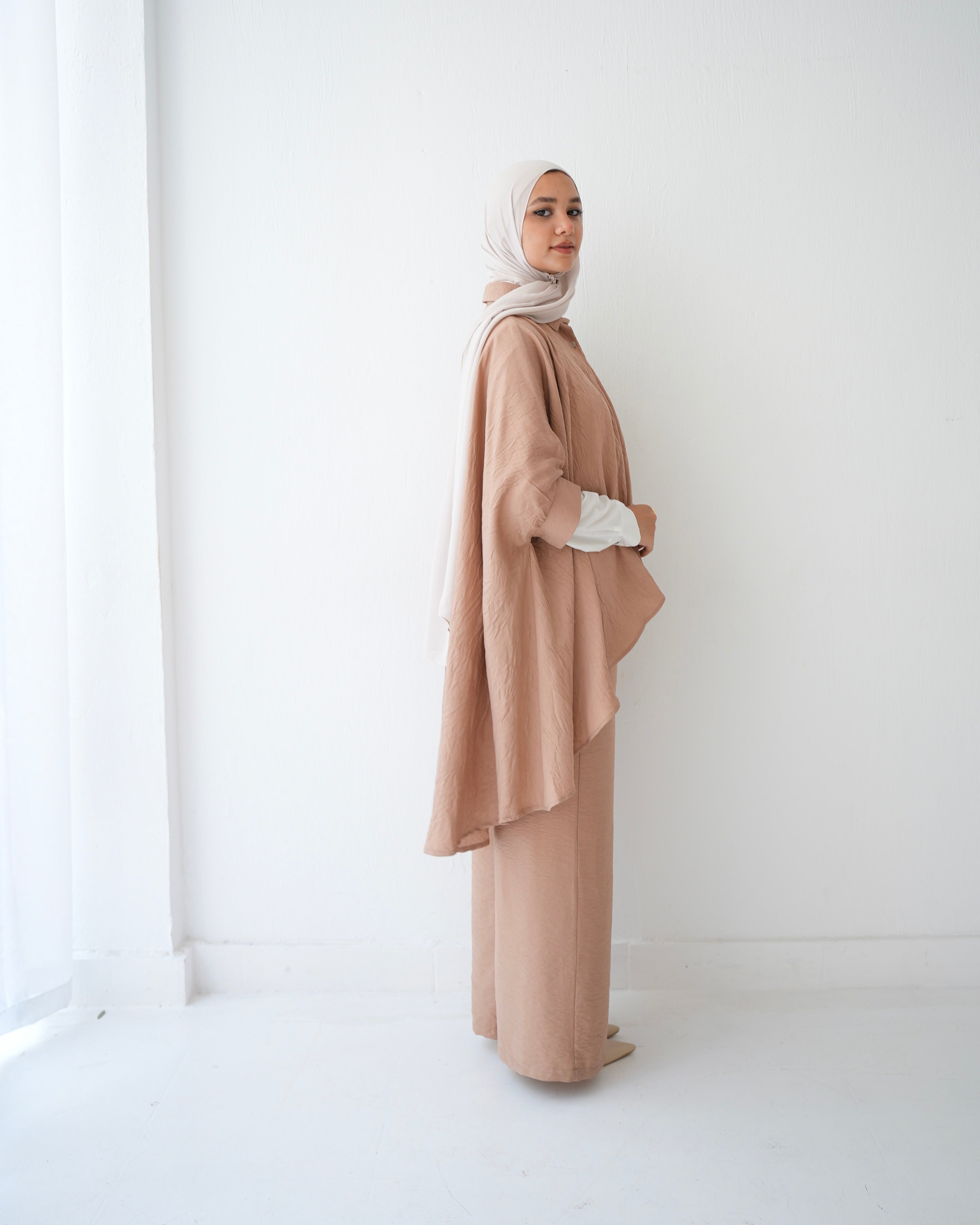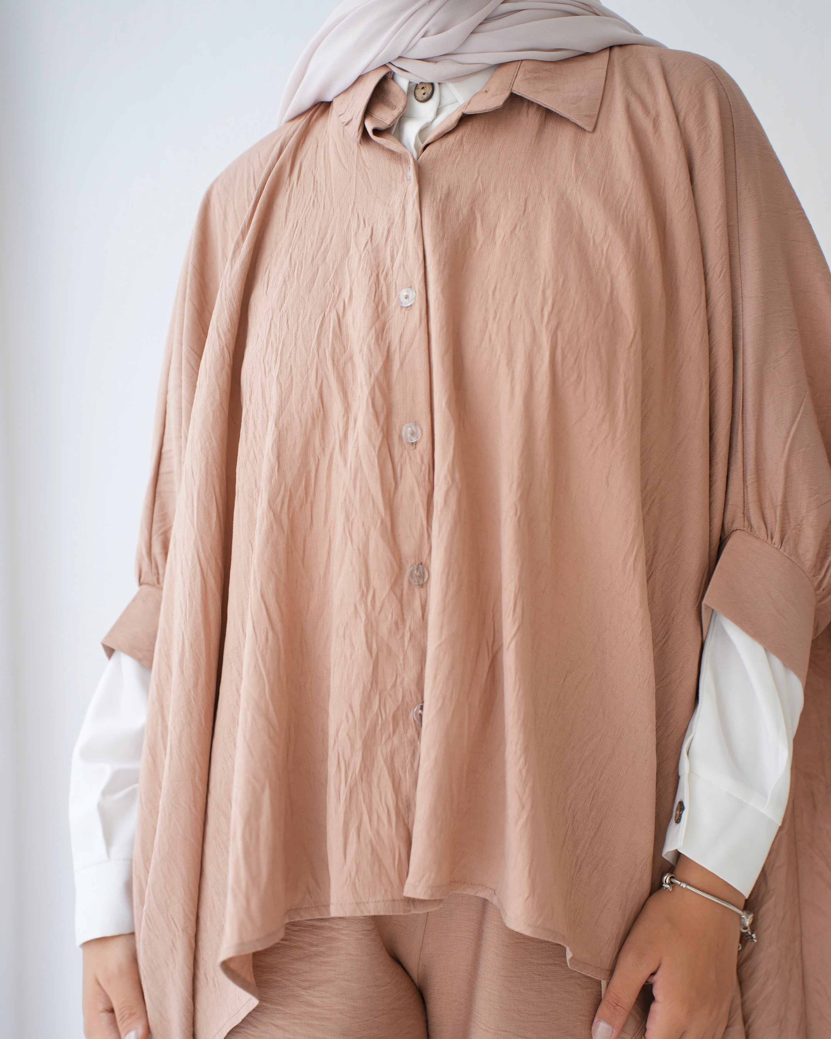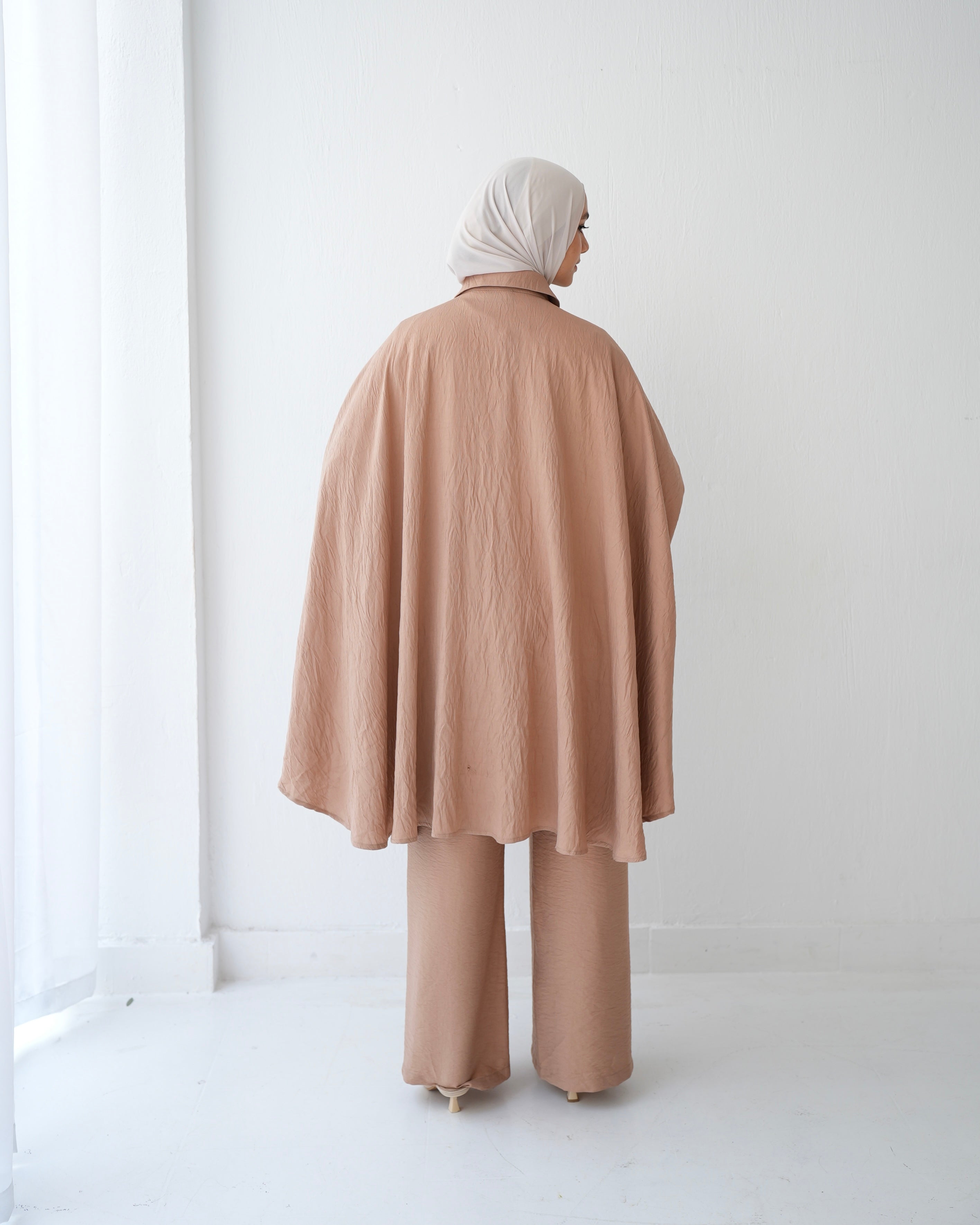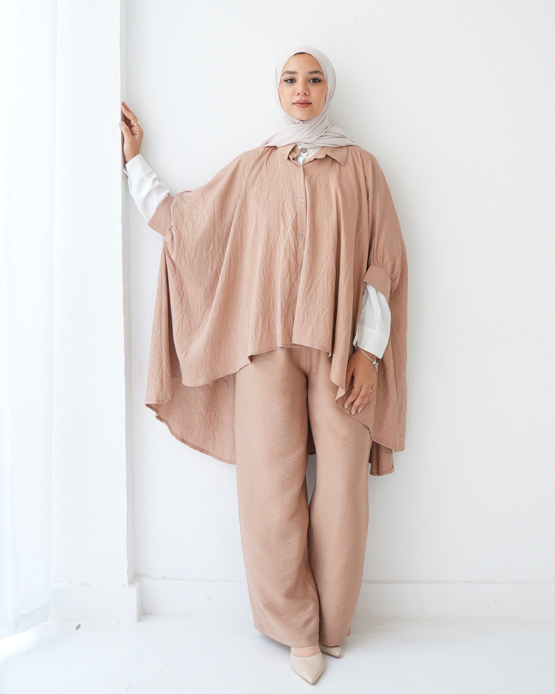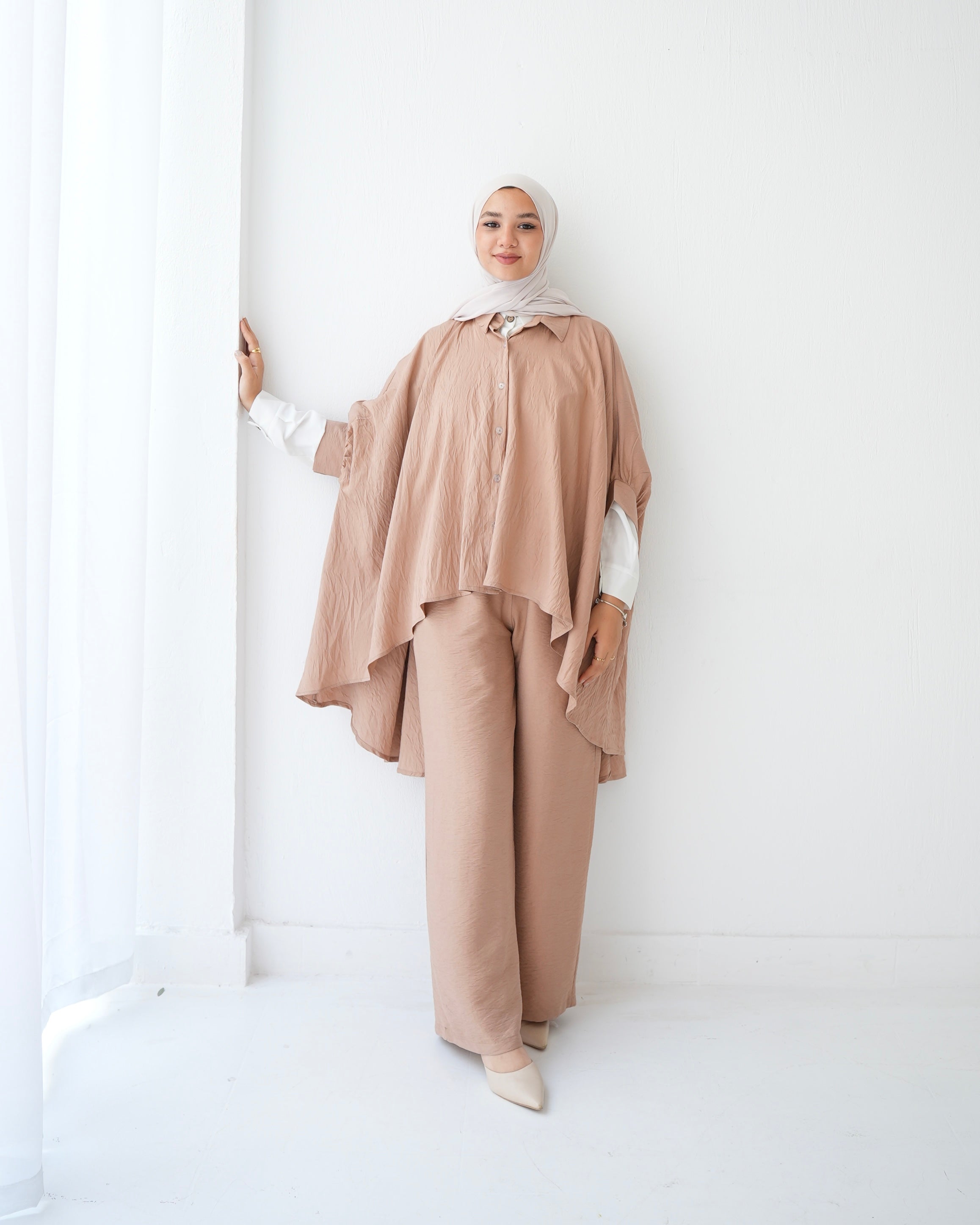 - Over Sized Poncho and Pants Set Cafe C11063