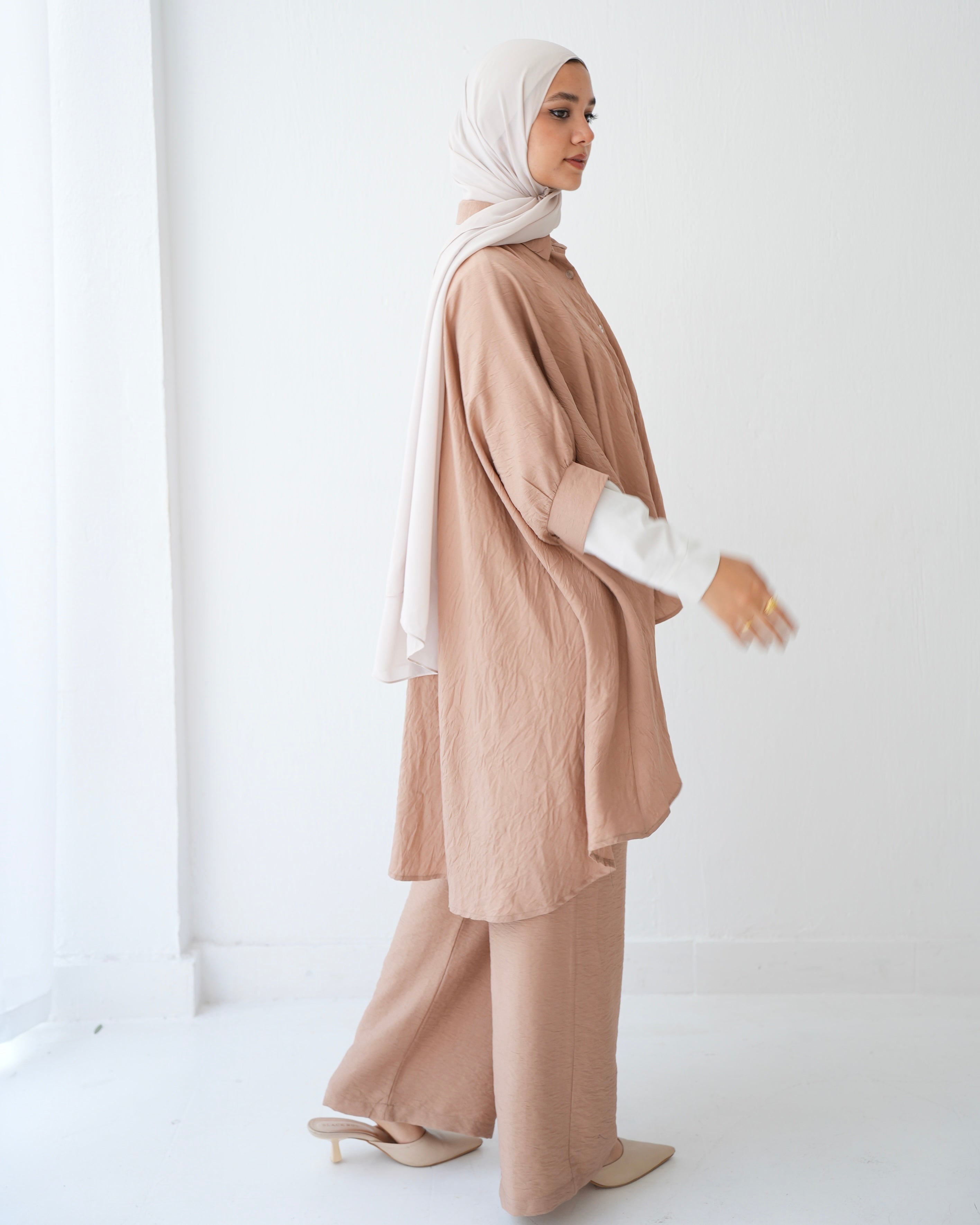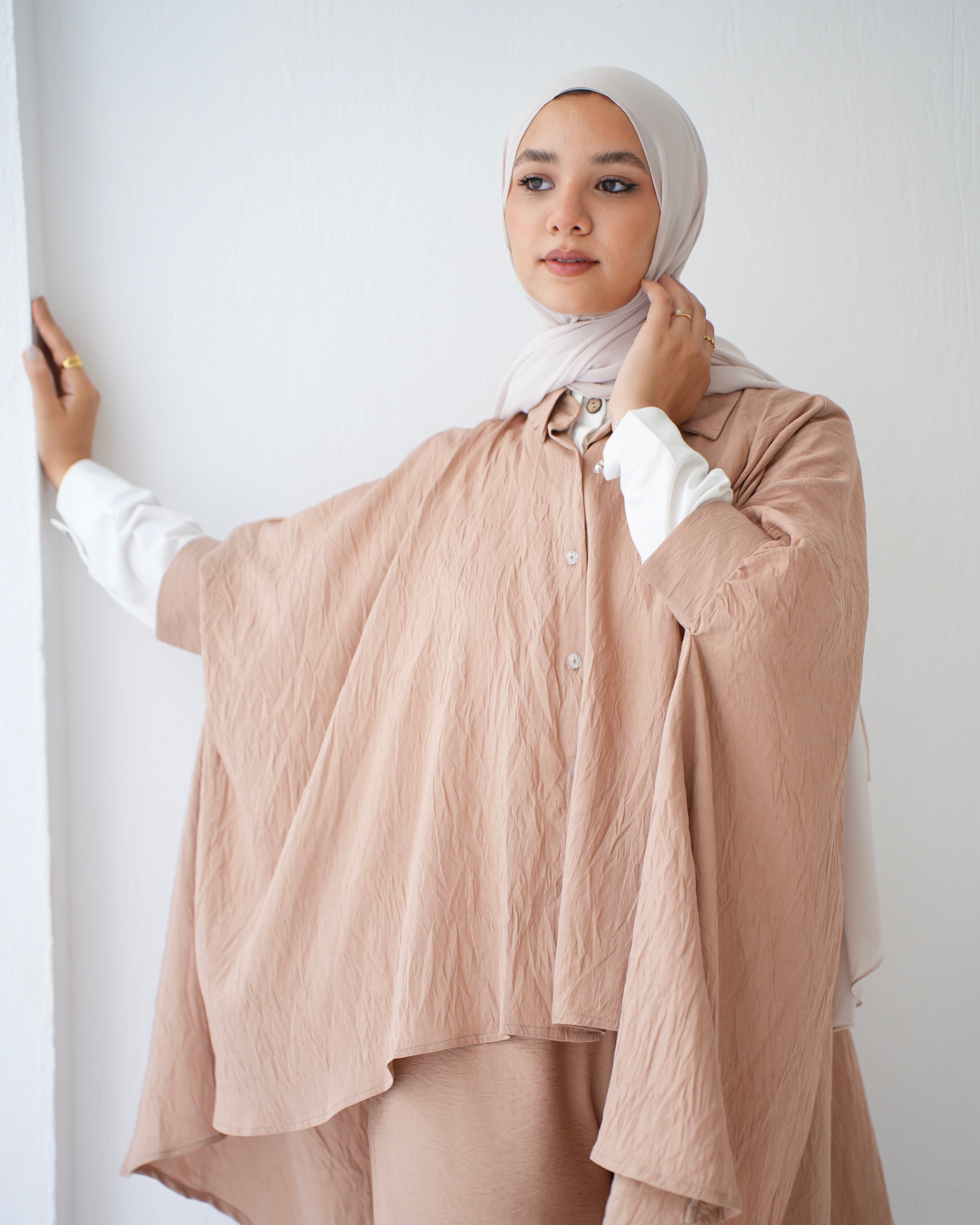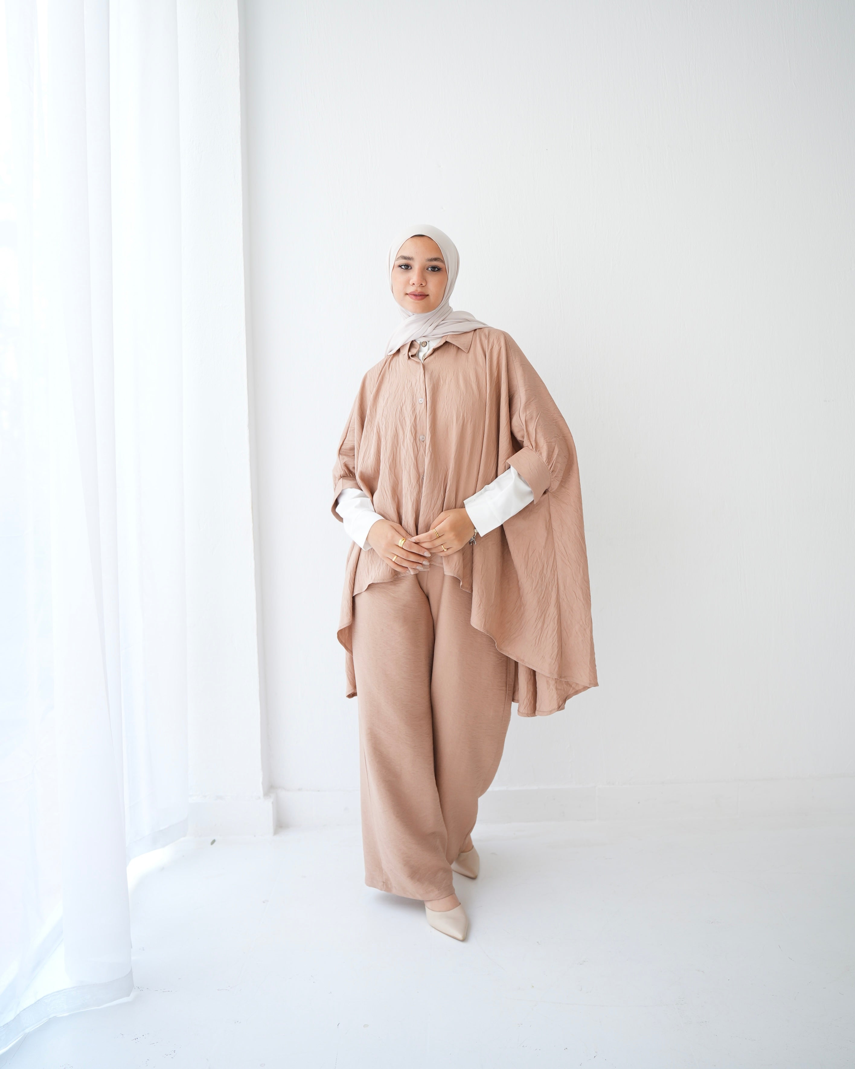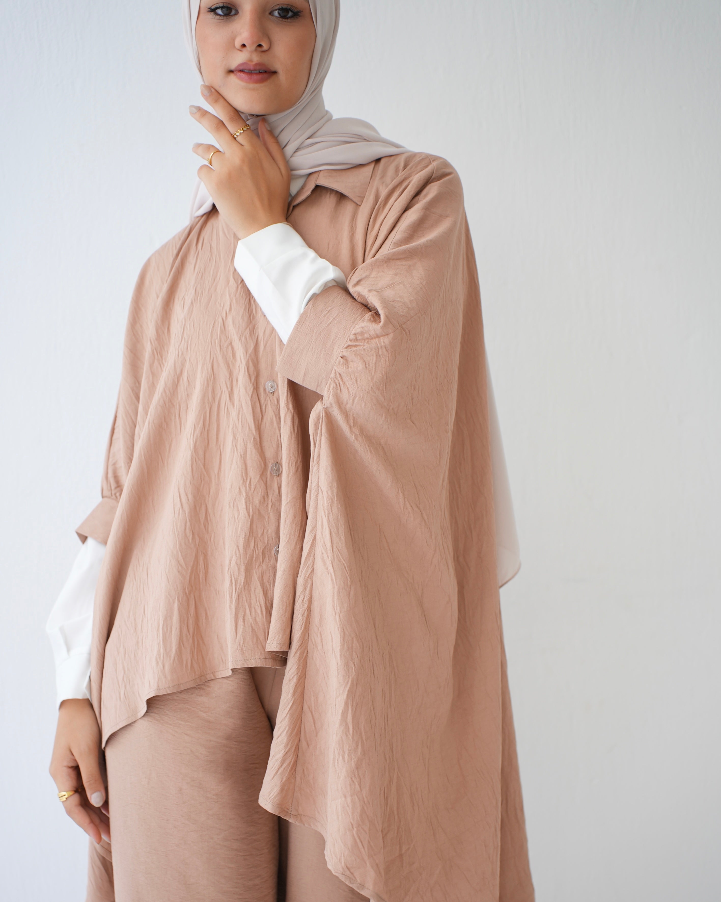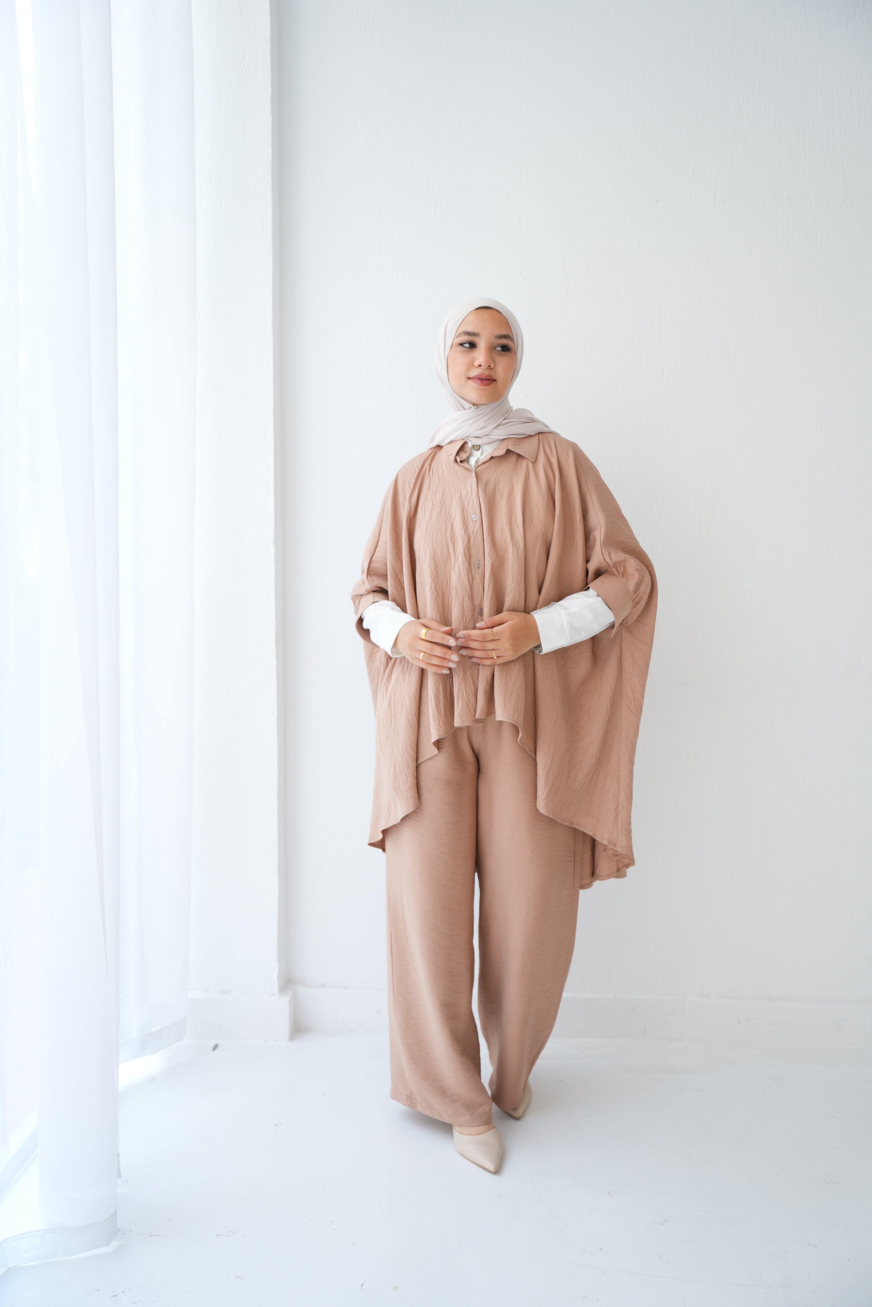 - Over Sized Poncho and Pants Set Cafe C11063