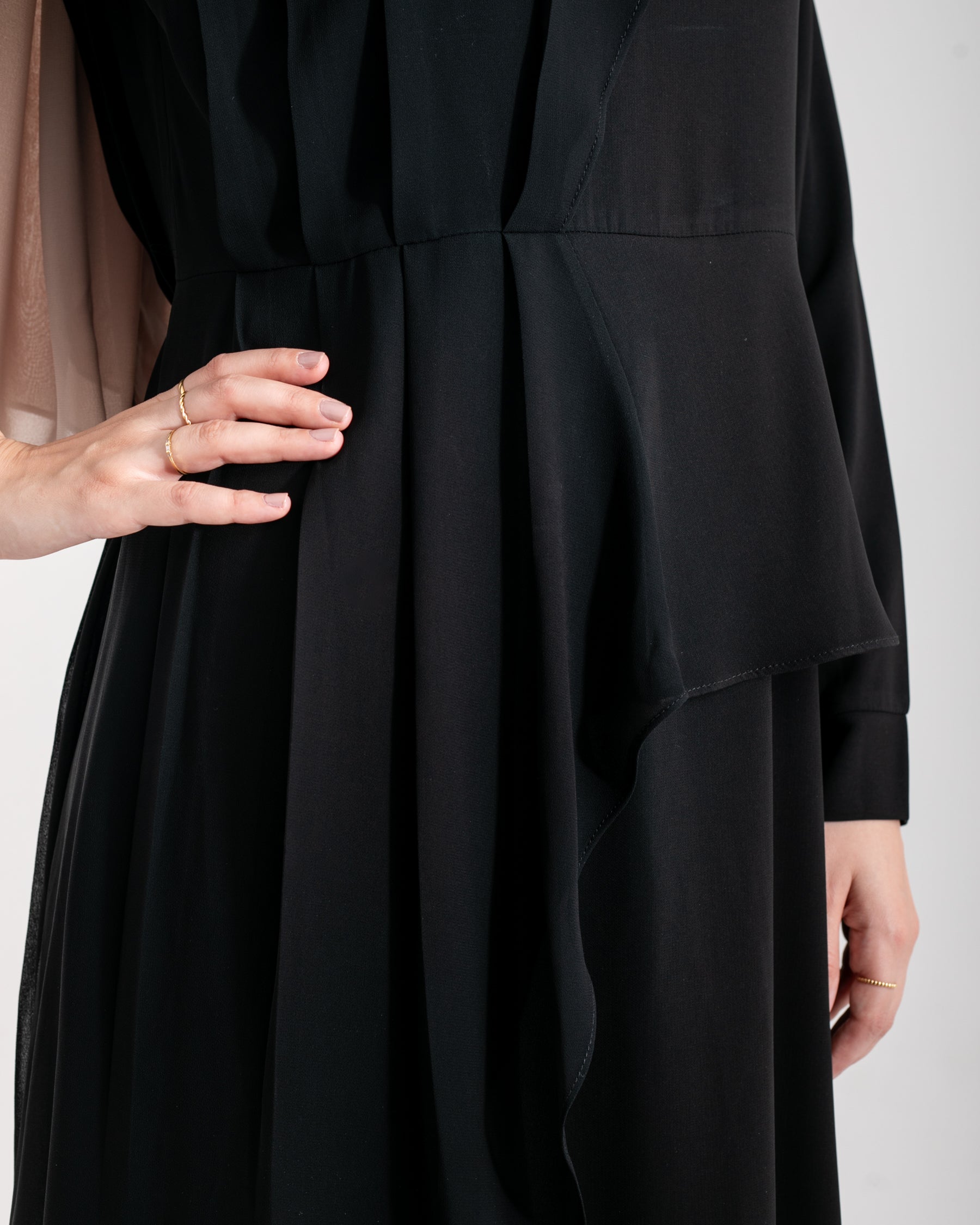 It's flawless asymmetric design of soft chiffon and crepe fabrics will instantly capture your eye and mind!
