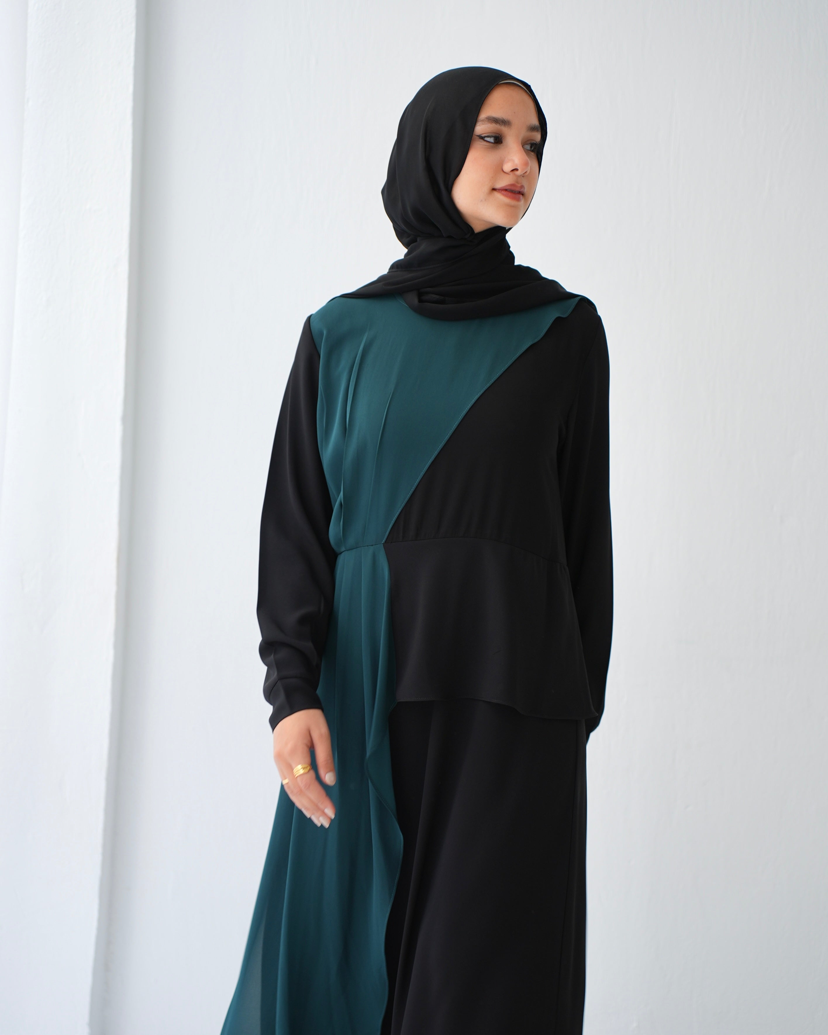 It's flawless asymmetric design of soft chiffon and crepe fabrics will instantly capture your eye and mind!