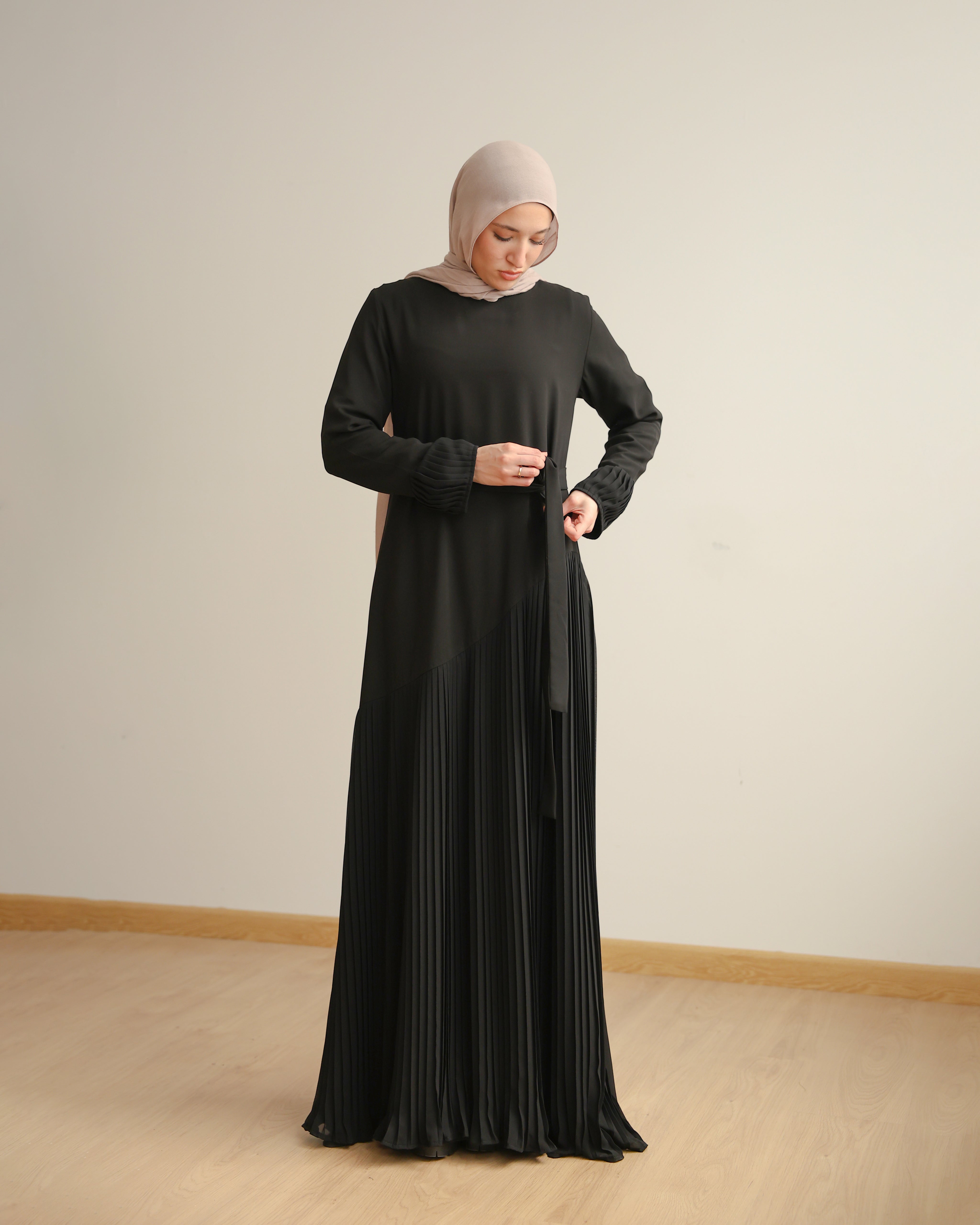 Asymmetrical Pleated Abaya Black C104