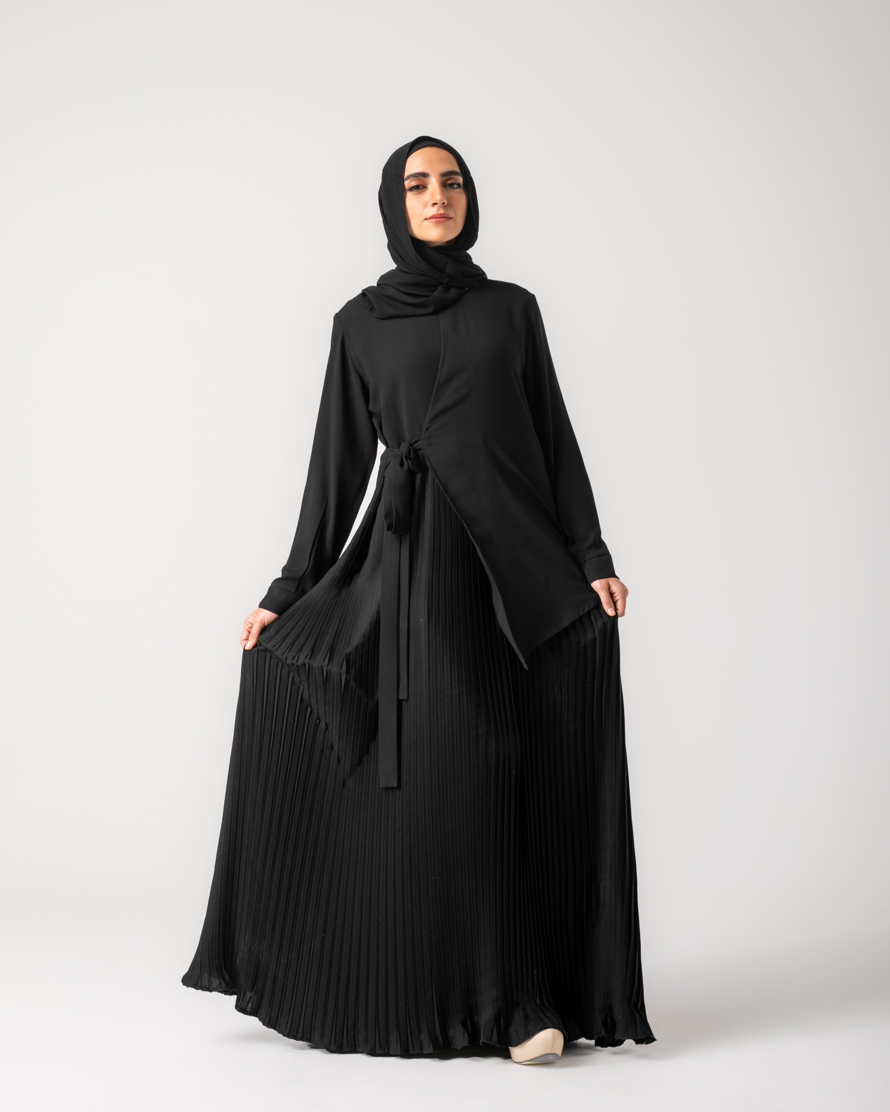 Front Pleated Tie Abaya C78