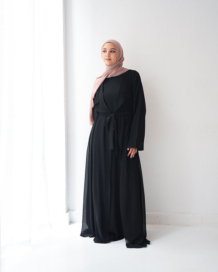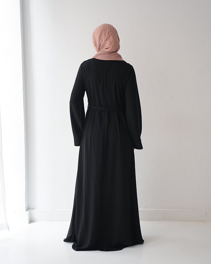 Sided Chiffon Crepe Abaya Black C46