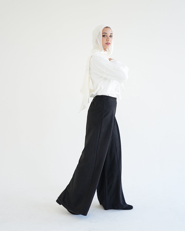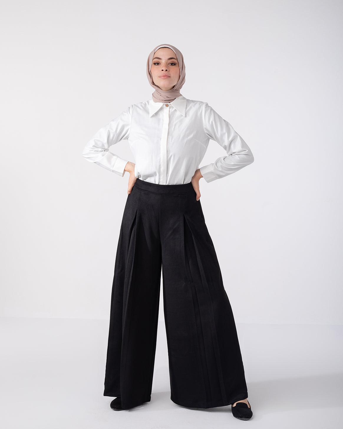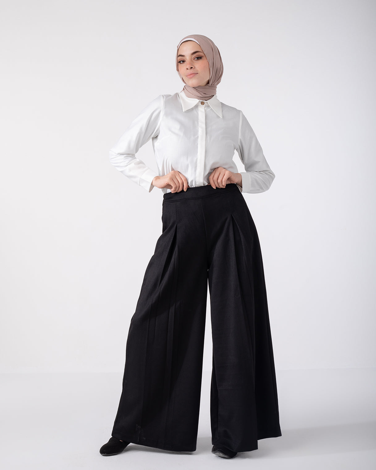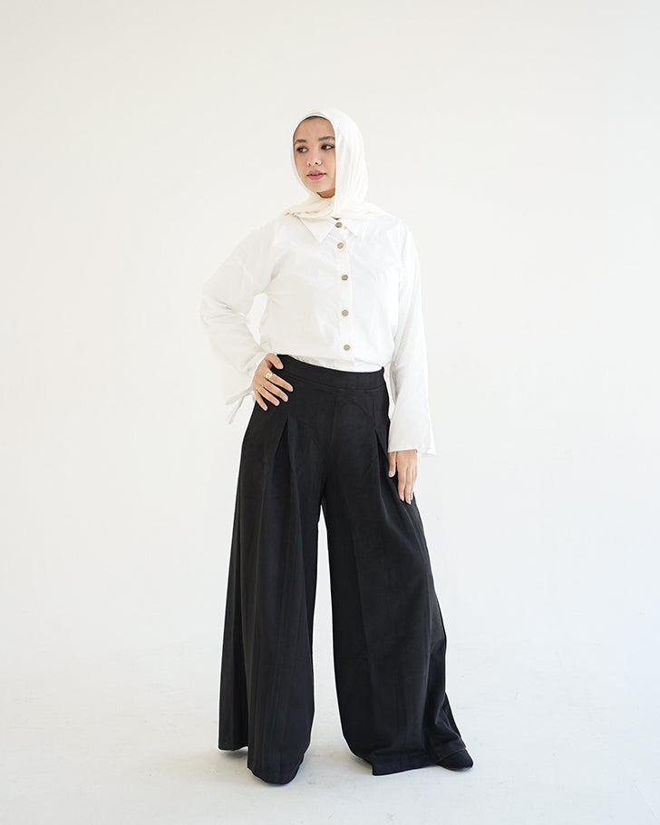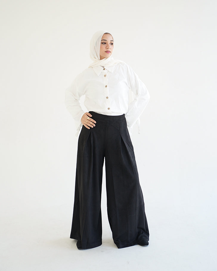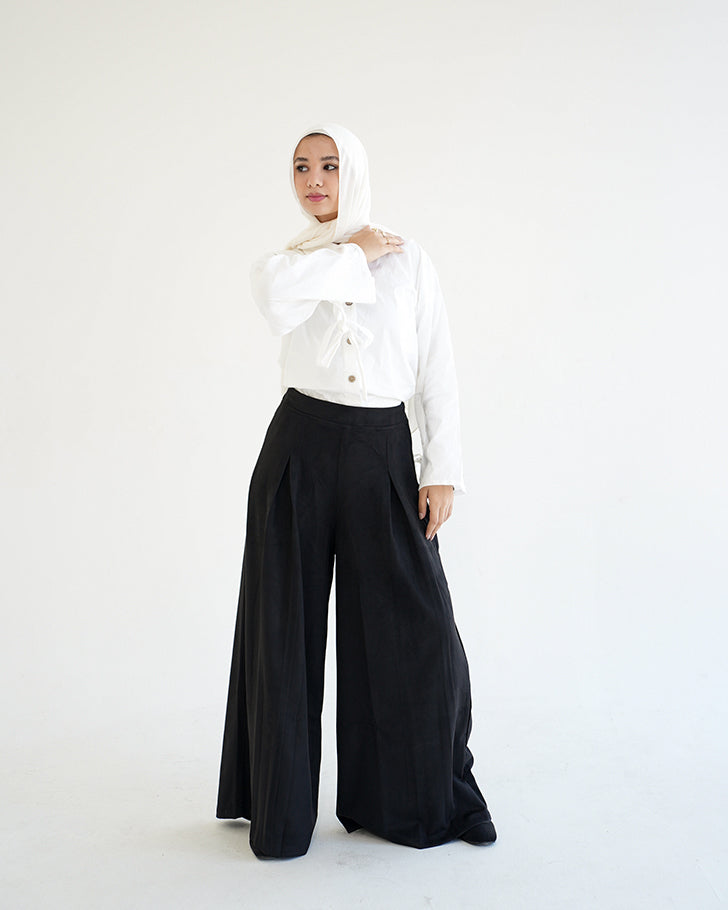 It’s all about the fabulous suede fabric and delicate pleats of these pants!