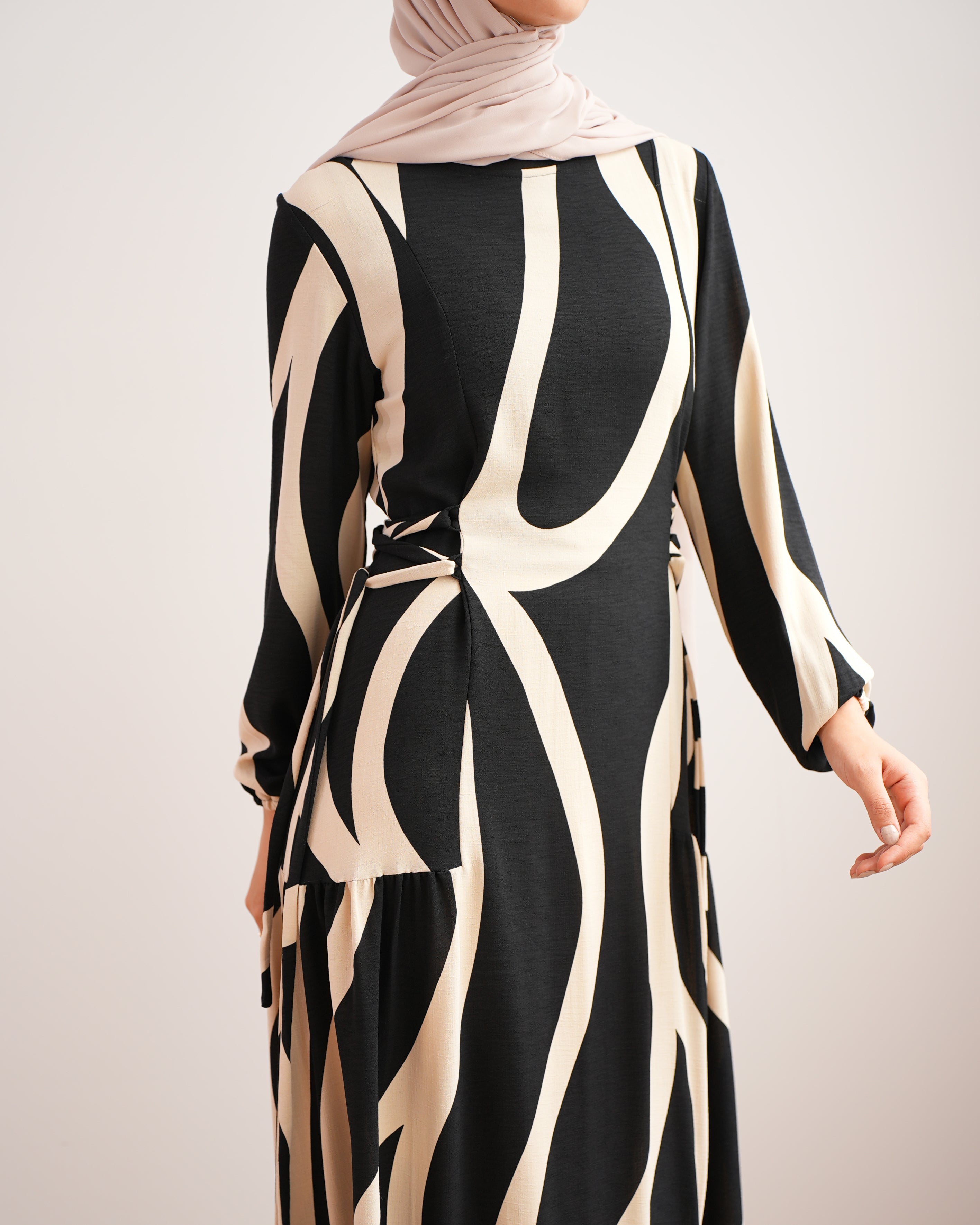 Front Pleated Tie Abaya C78