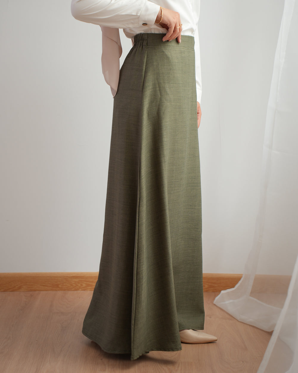 Side Wrap Pleated Abaya Olive C113